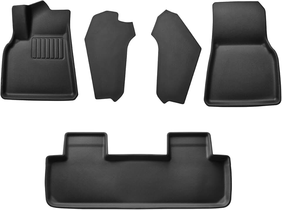 Spigen WeatherBloc Floor Mat Set (with Edgeguard)(Carbon Edition) Non-Slide Weatherproof Custom Fit Designed for Tesla Model Y 2024/2023/2022 with Sliplock Technology
