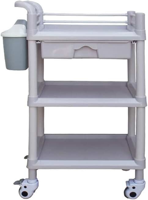 Cart Trolley On Wheels Tool 3 Tier Medical Utility Cart with Drawer & Dirt Bucket, Beauty Salon Rolling Trolley for Stylist Hairdresser, 90kg Load, 54×37×98cm