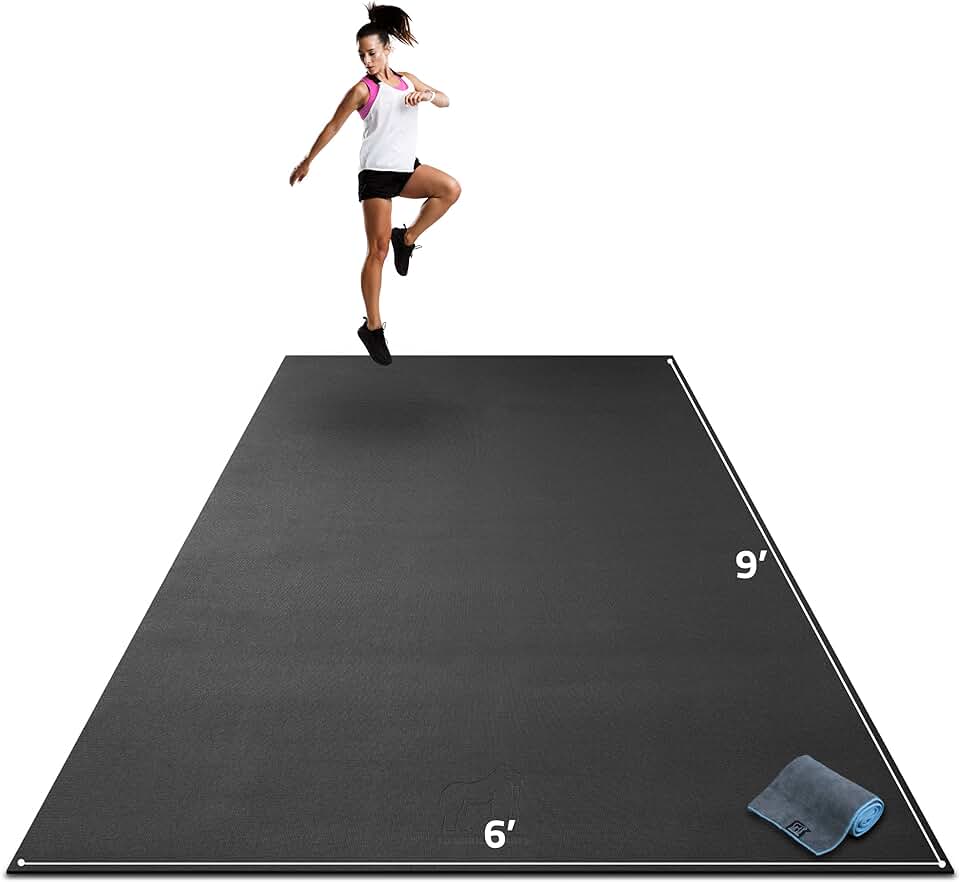Gorilla Mats Premium Extra Large Exercise Mat – 9' x 6' x 1/4" Ultra Durable, Non-Slip, Workout Mat for Instant Home Gym Flooring – Works Great on Any Floor Type or Carpet – Use With or Without Shoes