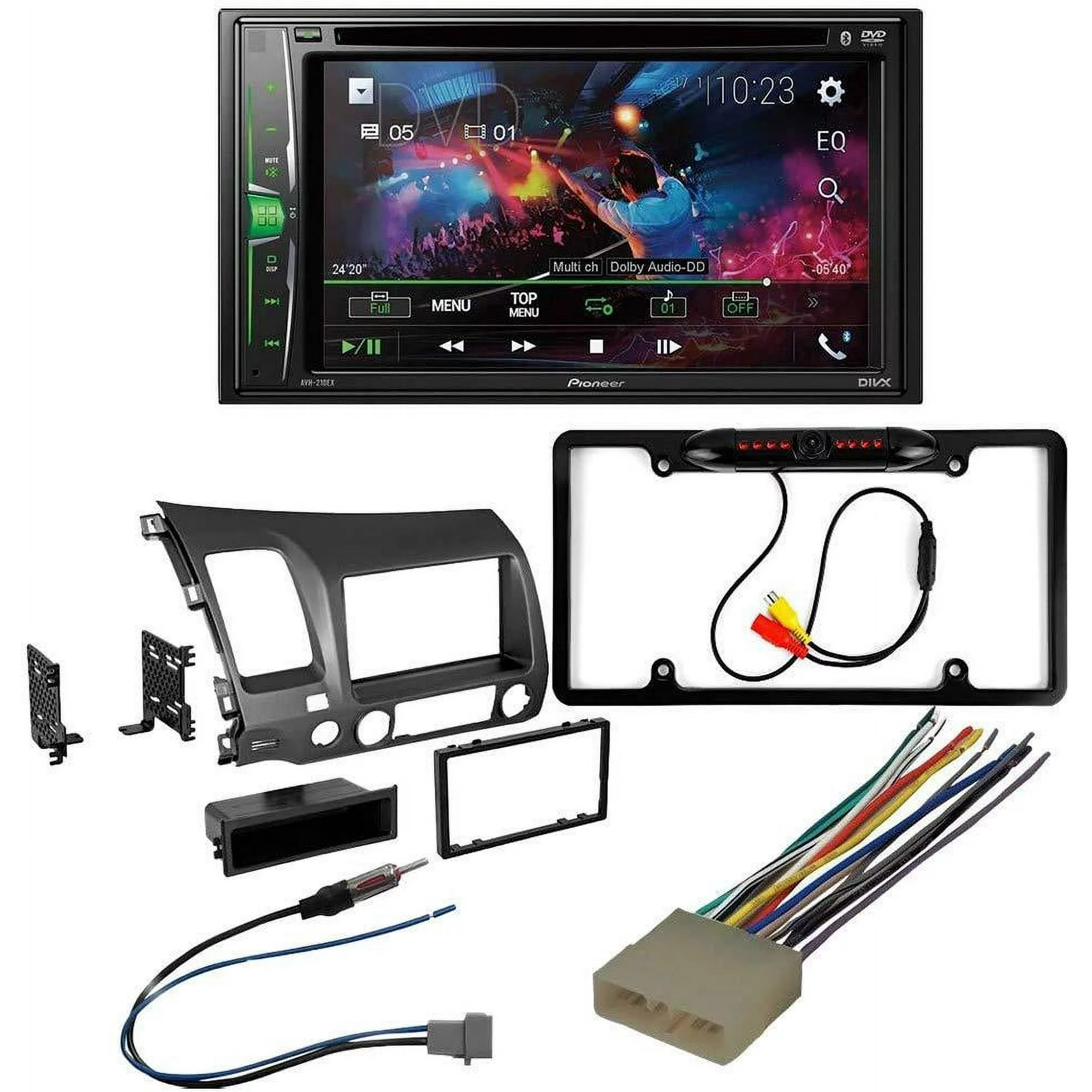 KIT5008 Bundle for 2006-2011 Honda Civic W/ Pioneer AVH-241EX Double DIN Car Stereo with Bluetooth/Backup Camera/Installation Kit/in-Dash DVD/CD AM/FM 6.2" Touchscreen Digital Media Receiver