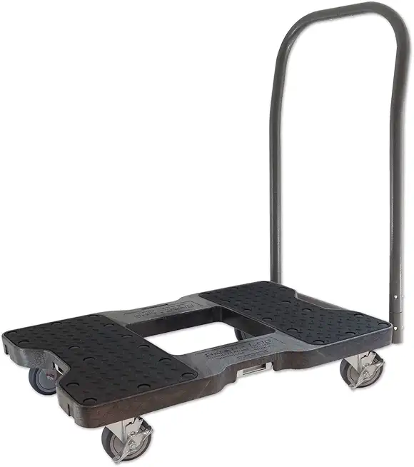 SNAP-LOC 1500 LB PUSH CART DOLLY BLACK with Steel Frame, 4 inch Casters, Push Bar and optional E-Strap Attachment