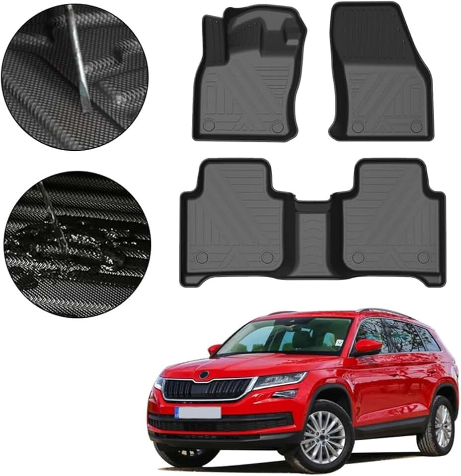 Foot Pad Compatible with Skoda Kodiaq 2017 2018 2019 2020 Car Waterproof Non-Slip Rubber Floor Mat TPE Car Accessories