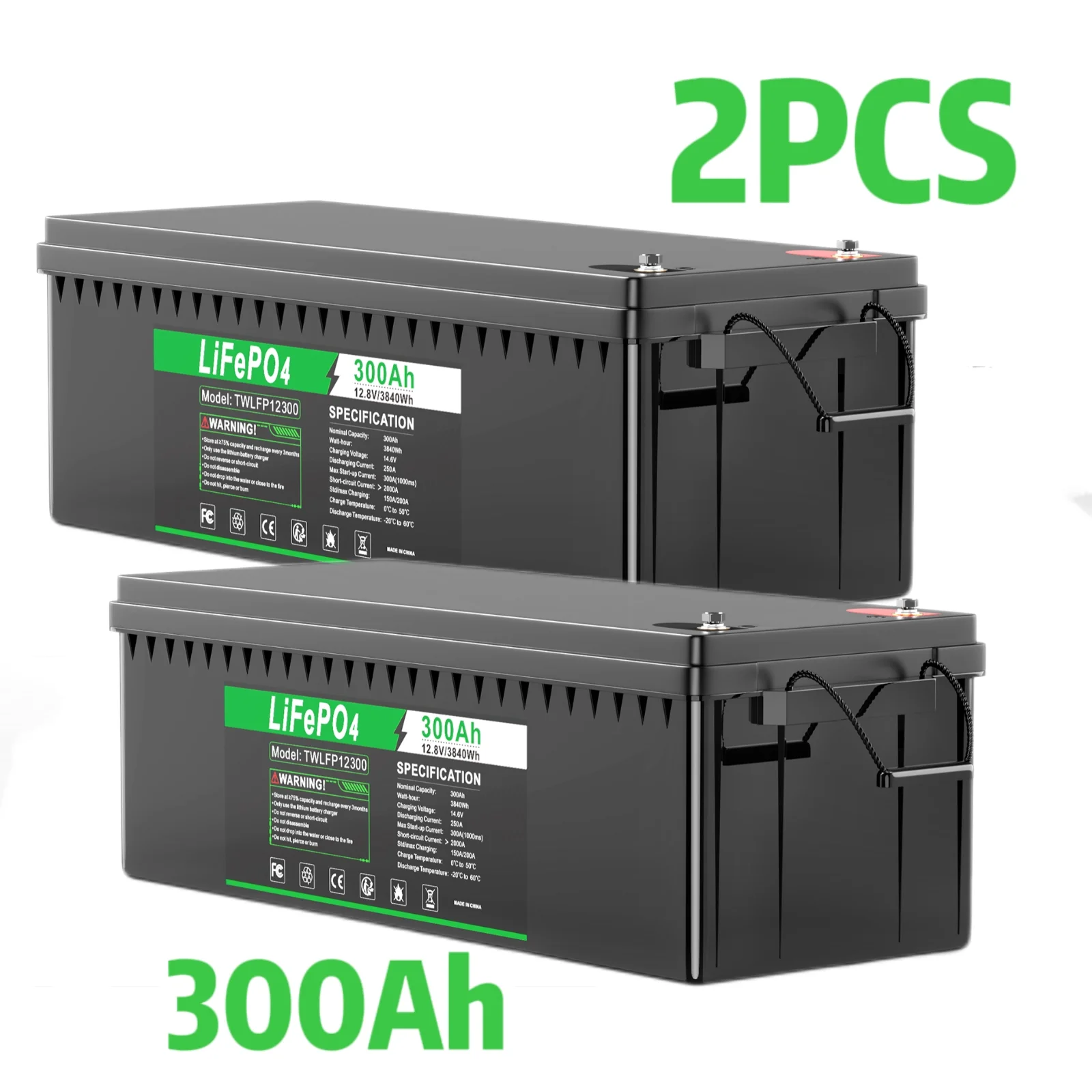 LabTEC 2Packs LiFePO4 Battery 12V 300Ah,2000-8000 Cycles Lithium-Iron Battery for Backup Power, Solar, Trolling Motor, Golf Cart