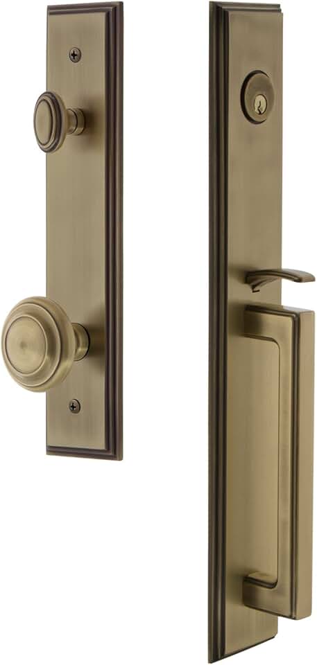 844958 Hardware Carre' One-Piece Handleset with D Grip and Circulaire Knob, Backset Size-2.75", Vintage Brass