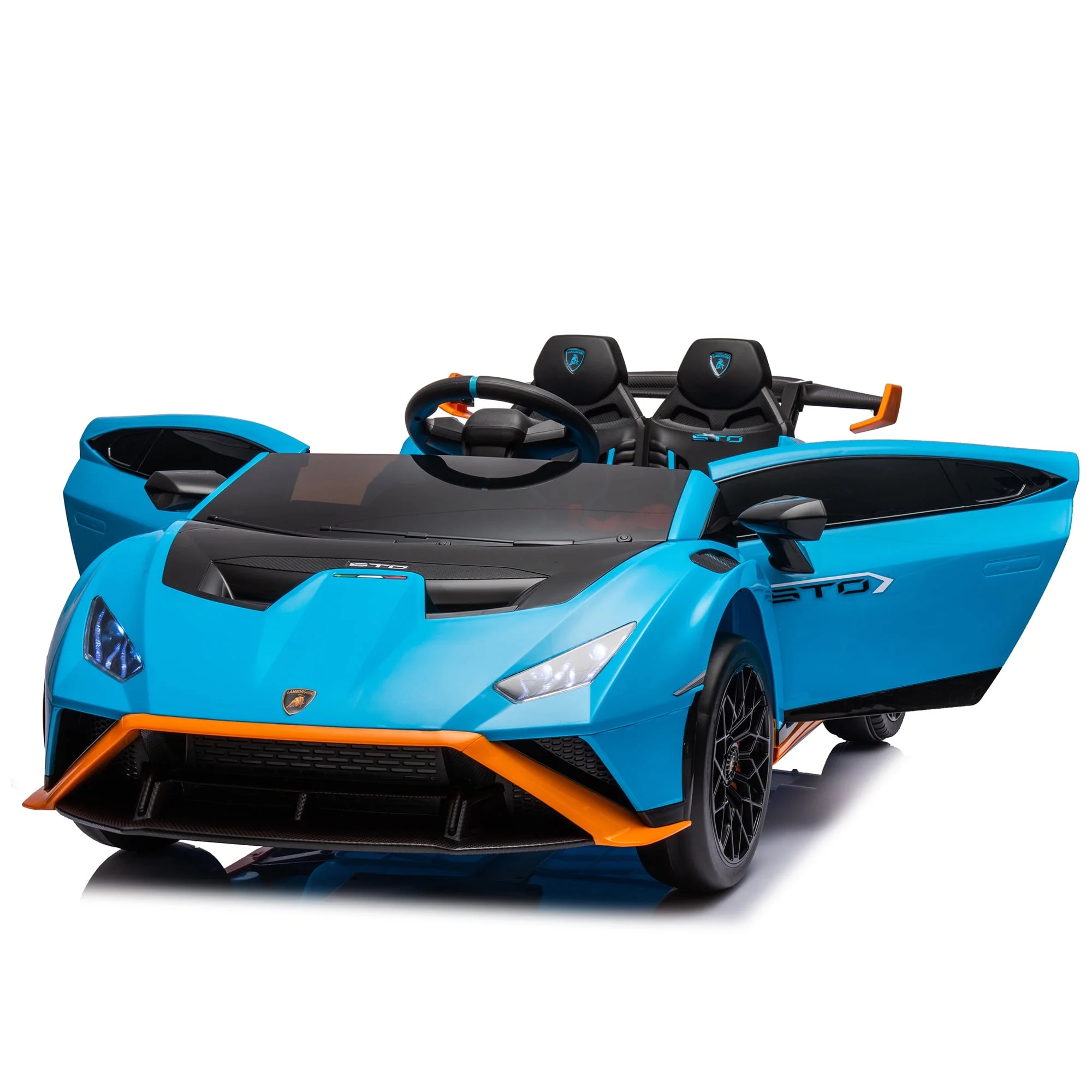 Lamborghini 24 V Ride On Sports Car With Remote Control, Licensed Lamborghini STO Battery Powered Ride On Toy Cars W/Dynamic Music/360° Spin/Drift/Bluetooth/LED Light, Electric Car for Kids 3-8, Blue