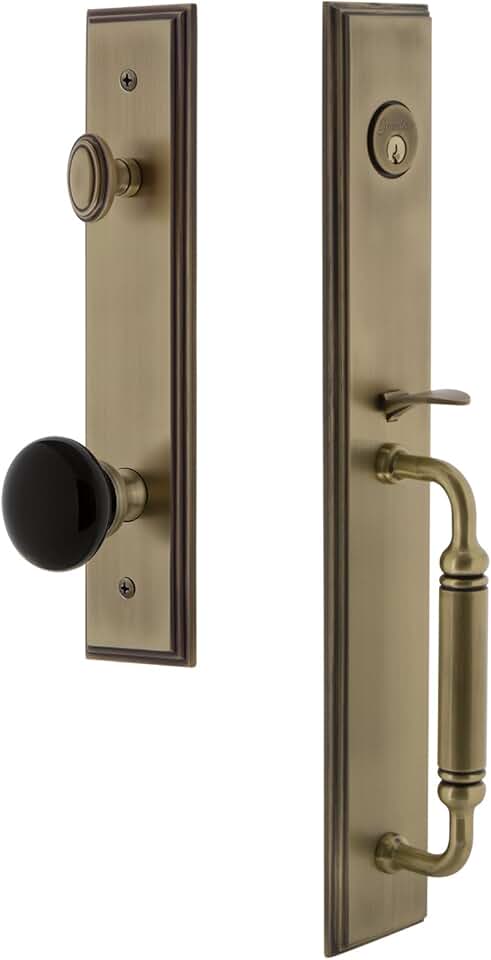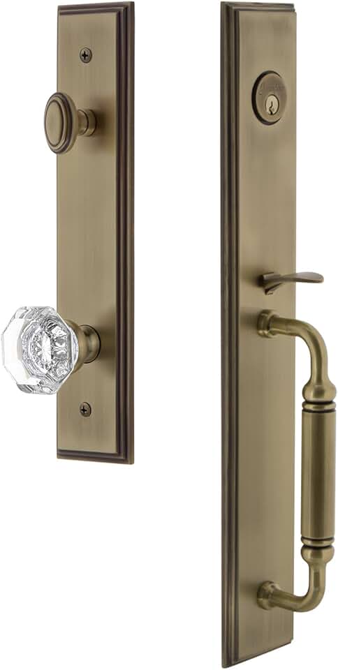 842274 Hardware Carre' One-Piece Handleset with C Grip and Chambord Knob, Backset Size-2.375", Vintage Brass