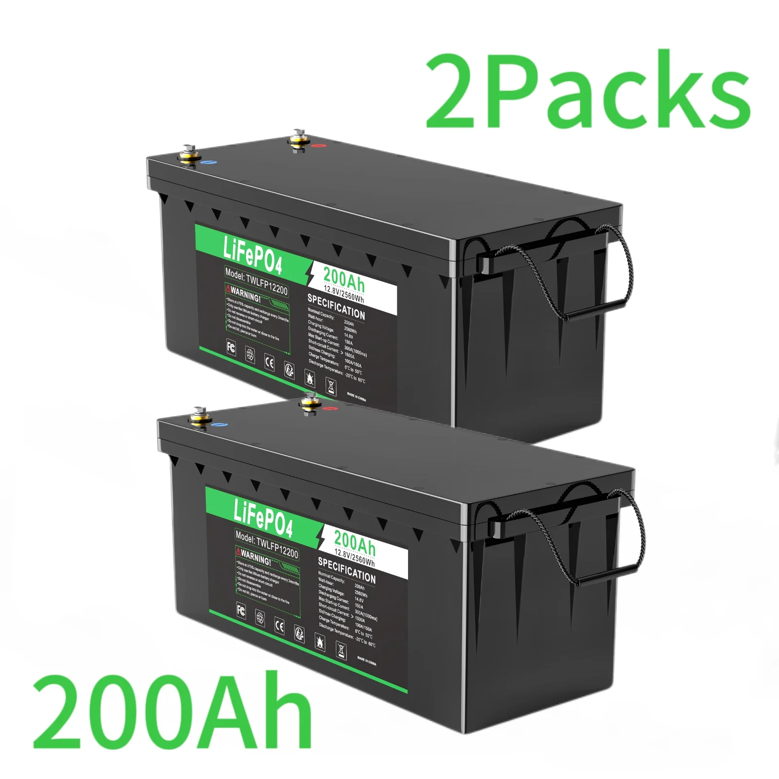 LabTEC 2Packs LiFePO4 Battery 12V 200Ah,2000-8000 Cycles Lithium-Iron Battery for Backup Power, Solar, Trolling Motor, Golf Cart