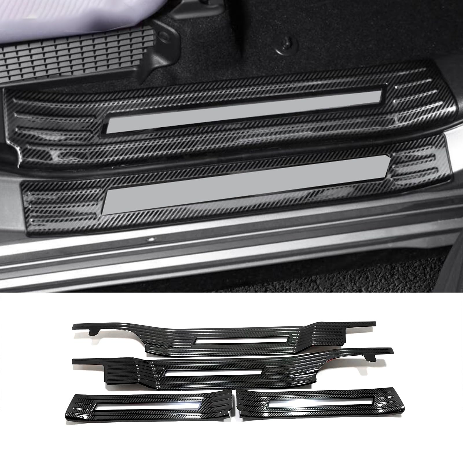 KELEIMAI Car Accessories Fit for Toyota Sienna 2022 2023 Inside Door Sill Scuff Plate Guard Cover Trims (Carbon Fiber Grain) Stainless Steel 4 PCS with Lights C18