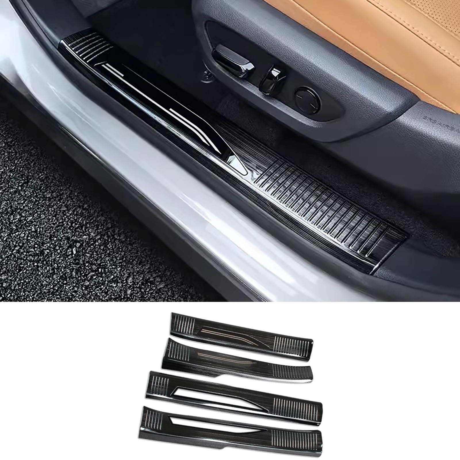 KELEIMAI Car Accessories Fit for Lexus New RX RX350 RX350h RX500h F Sport 2023 Inside Door Sill Scuff Plate Guard Cover Trims (Brushed Black Style) Stainless Steel 4 PCS C18
