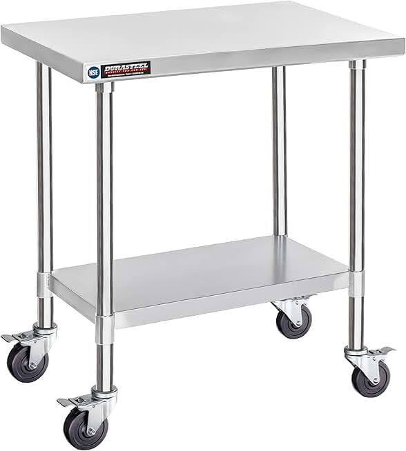 DuraSteel Food Prep Stainless Steel Table - 30 x 36 Inch Metal Table Cart - Commercial Workbench with Caster Wheel - NSF Certified - For Restaurant, Warehouse, Home, Kitchen, Garage