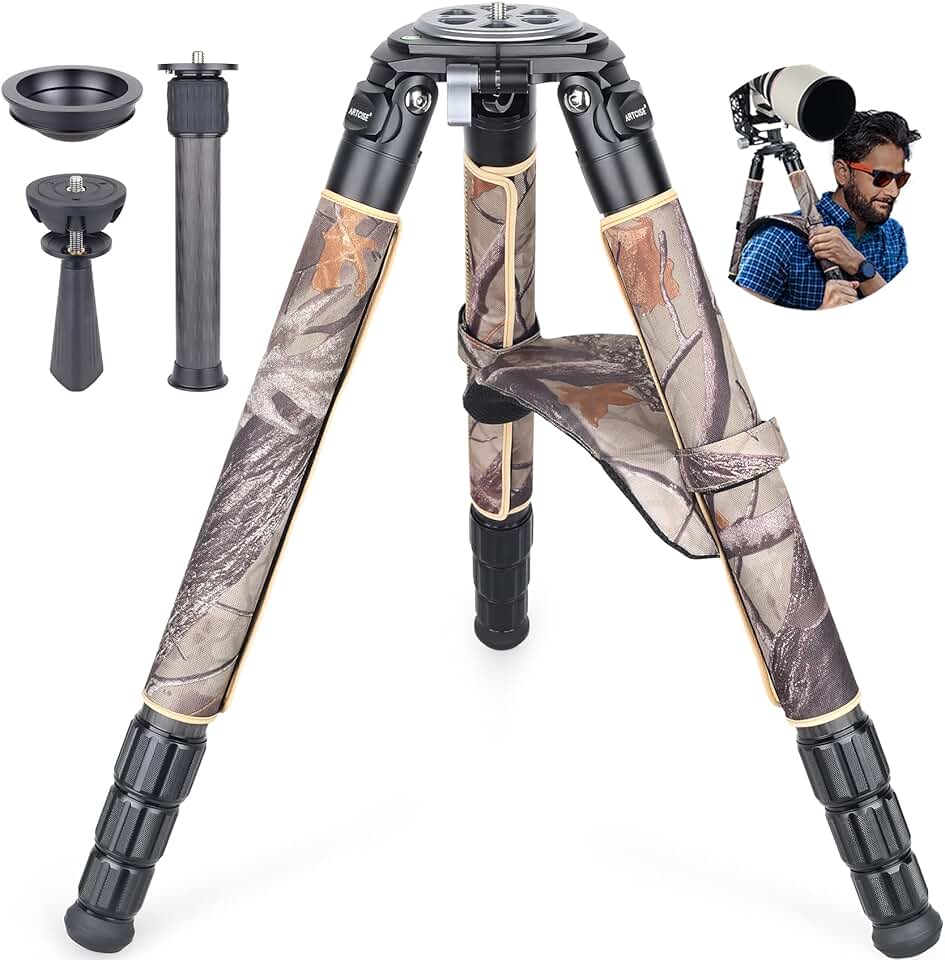 10 Layers 40mm Carbon Fiber Tripod with Camouflage Sleeve and 2 Section External Center Column Ultra Stable Professional Heavy Duty Carbon Bowl Tripod Max Load 88 Lbs/40 kg for Digital DSLR Cameras