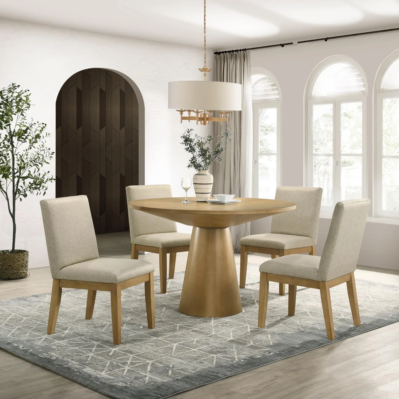 Roundhill Furniture Rocco Contemporary Dining Set, Round Pedestal Table with 4 Chairs, Driftwood