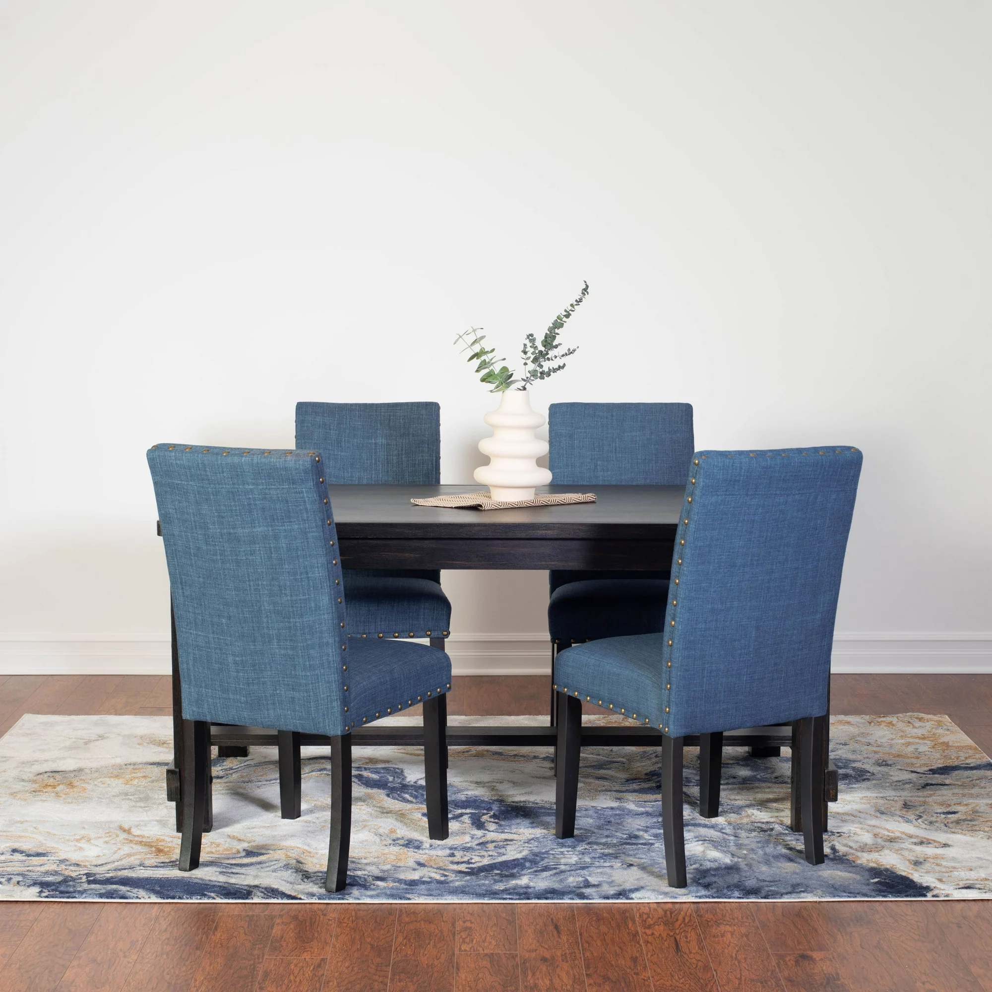 Roundhill Furniture Vanzo Contemporary 5-Piece Dining Set, Dining Table with 4 Stylish Chairs, Blue