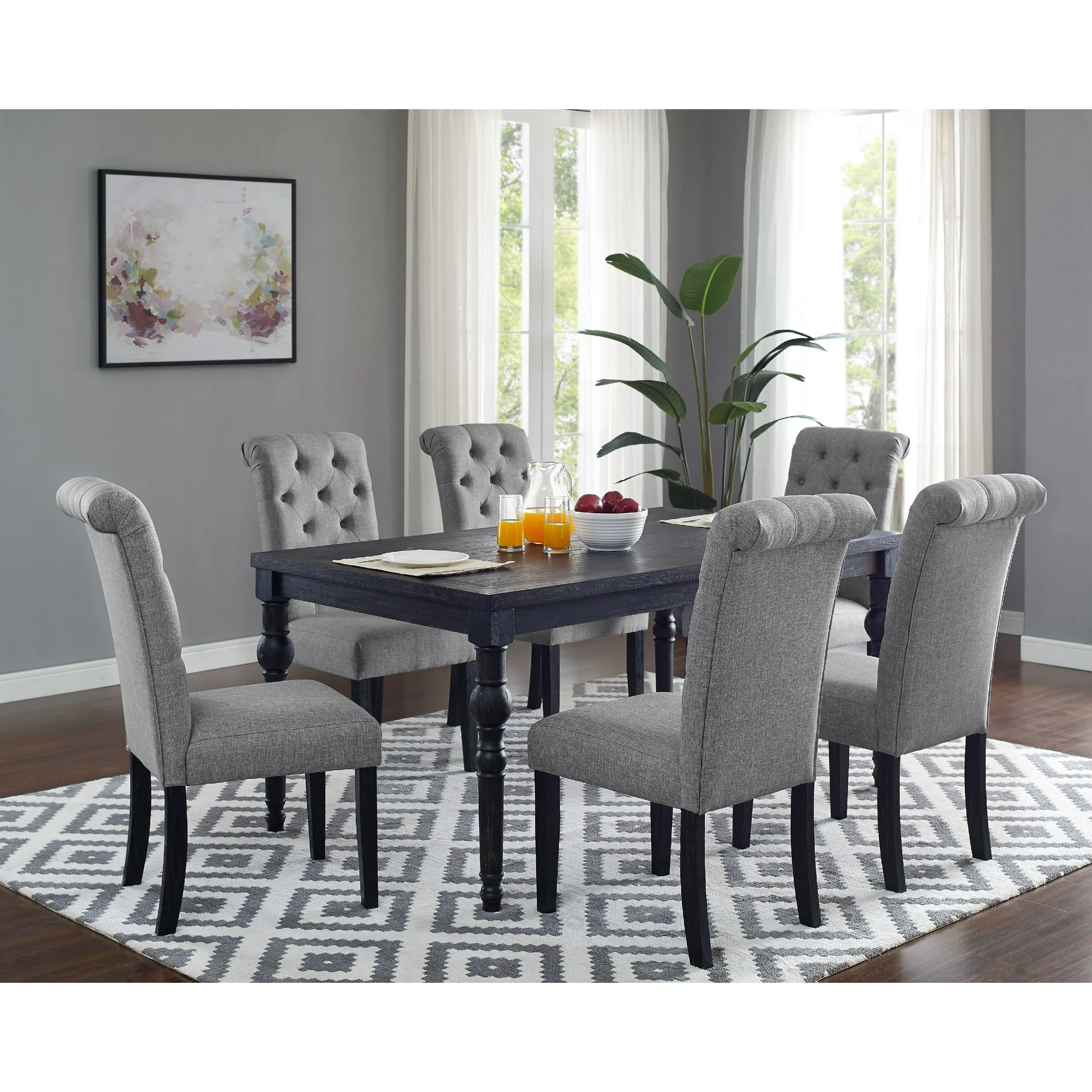 Roundhill Furniture Leviton Urban Style Dining Set: 30'' Height Table and 6 Chairs, Gray