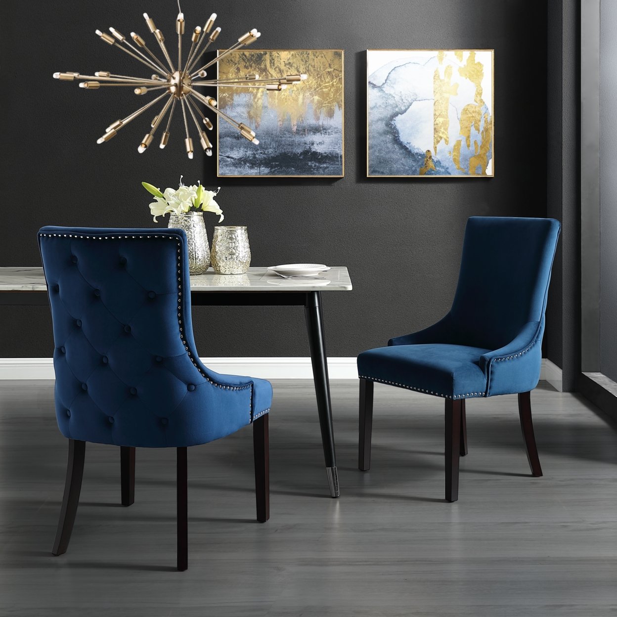 Ruben Leather PU or Velvet or Linen Dining Chair-Set of 2-Tufted-Nailhead Trim by Inspired Home