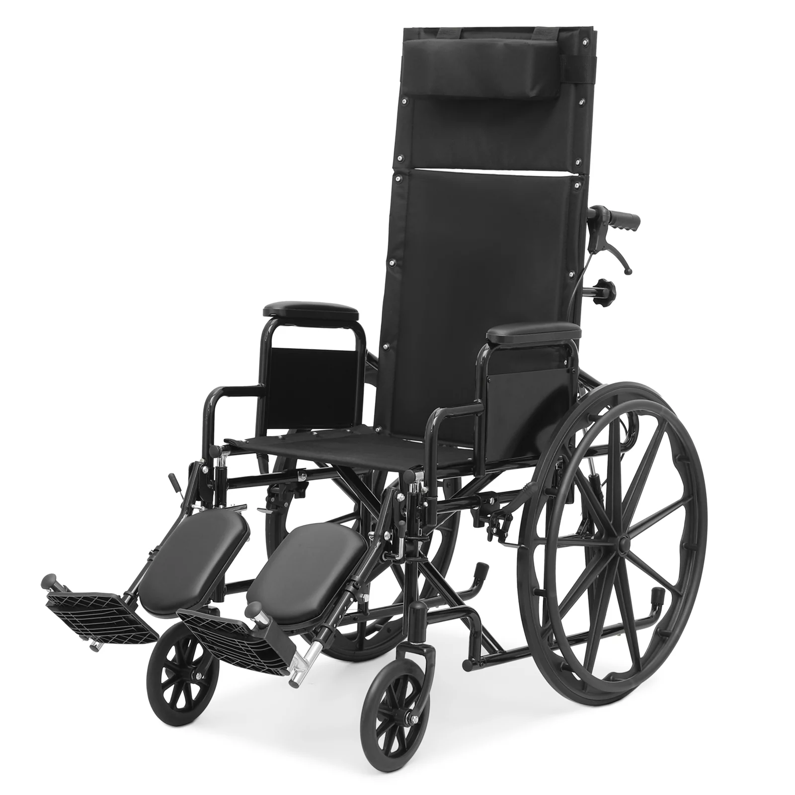 Magshion *FDA APPROVED* Recliner Folding Wheelchair with Detachable Armrests & Swing Away Elevating Legrests, Reclining Wheelchair with 18.5" Seat, Black