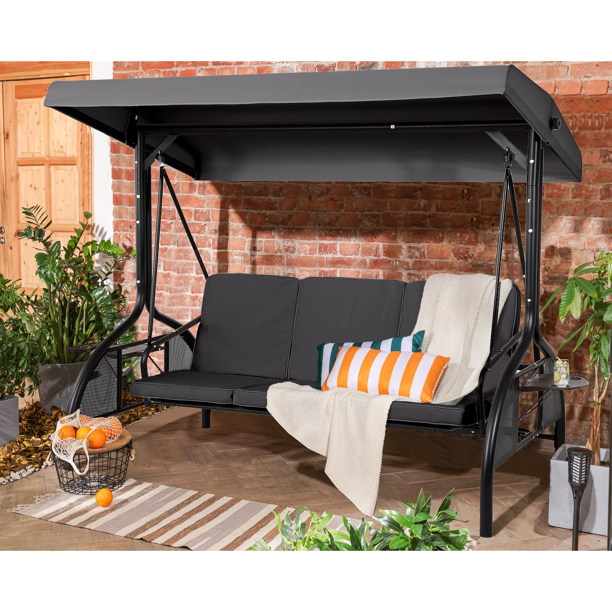 Magic Union Outdoor Porch Swing with Canopy, 3 Person Patio Porch Swing Chairs with Stand, Porch Bed Swing with Removable Cushion for Patio, Garden, Poolside,Gray