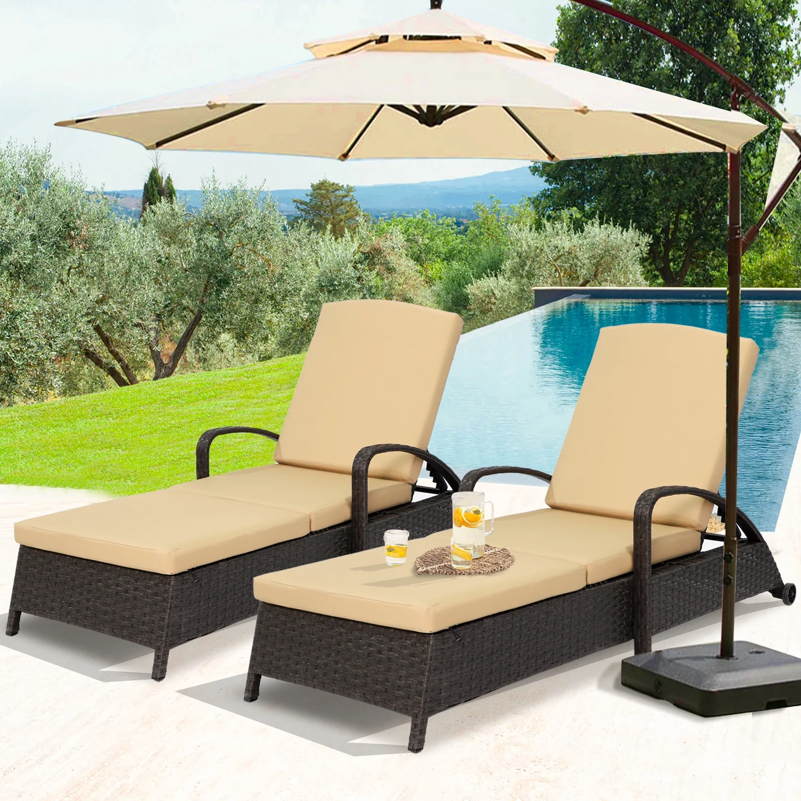 Magic Union Patio Chaise Lounge Chair, PE Rattan Outdoor Reclining Lounge Chair, Pool Lounge Chair with Wheels and Adjustable Backrest, Set of 2