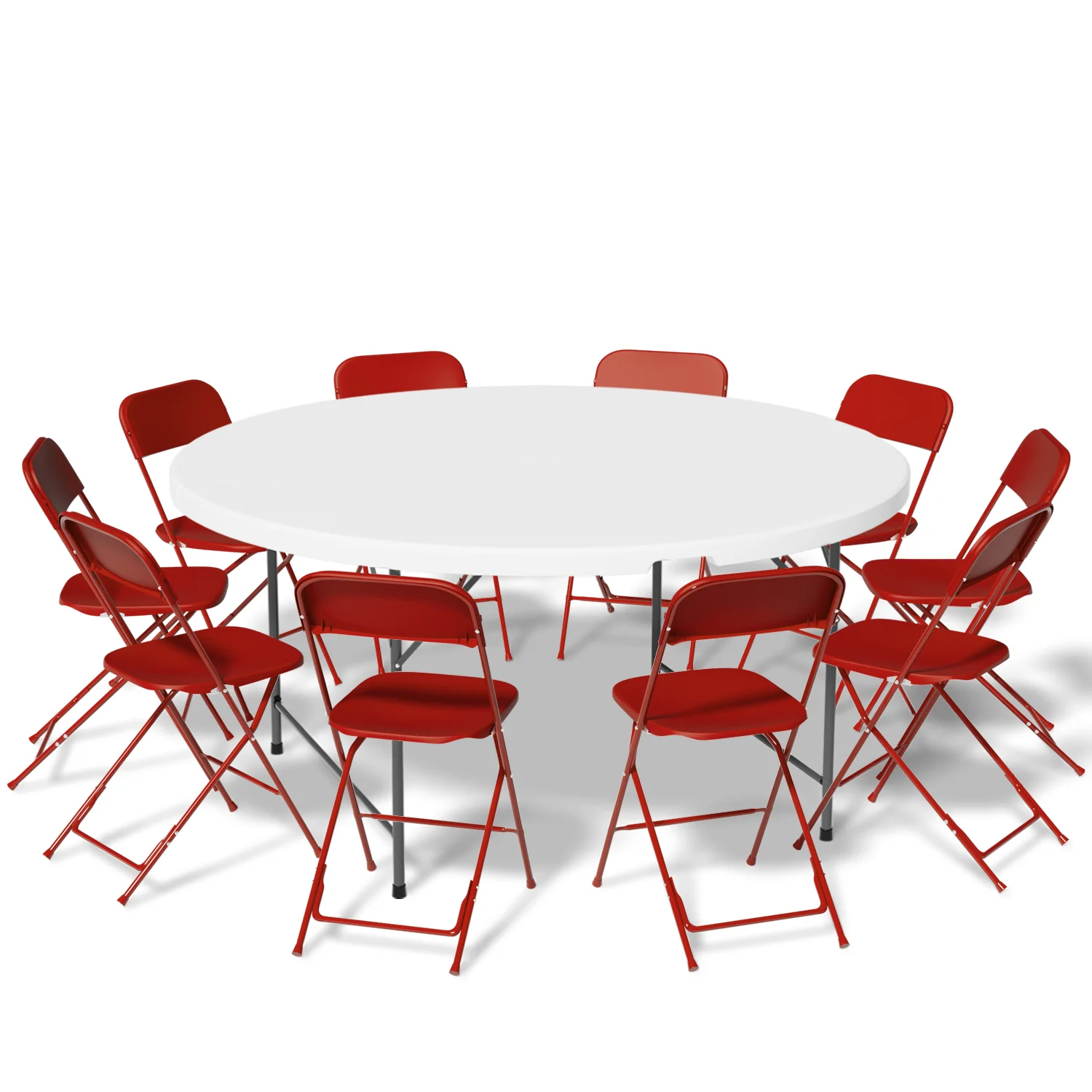 Magshion 11 Pieces 8 Ft White Heavy Duty Utility Table and 10 Red Foldable Chair Set, Folding Round Table Outdoor Picnic Desk with Carry Handle