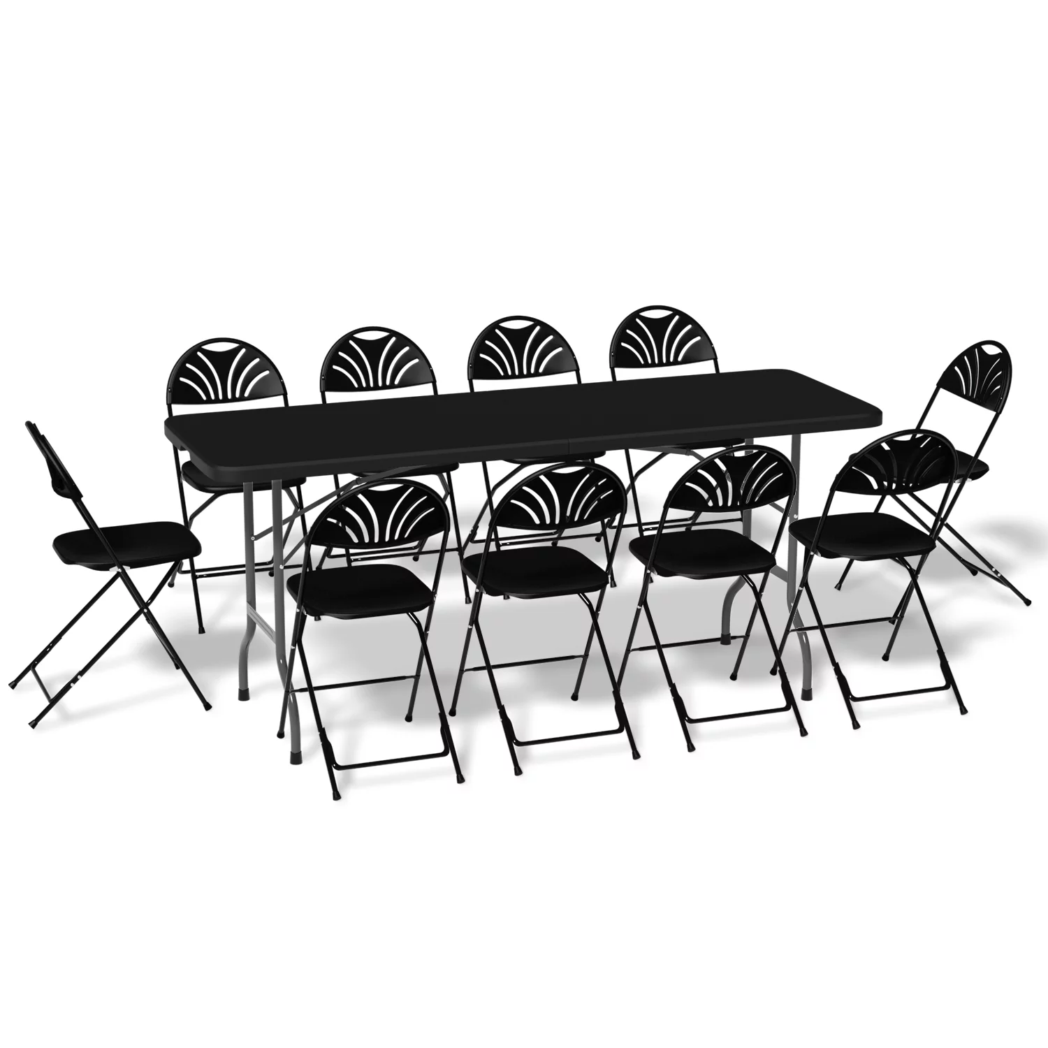 Magshion 11 Pieces 8 Ft Heavy Duty Plastic Folding Utility Dining Table and Chair Set, Outdoor Picnic Desk with Handle and Foldable Chairs, White/Black