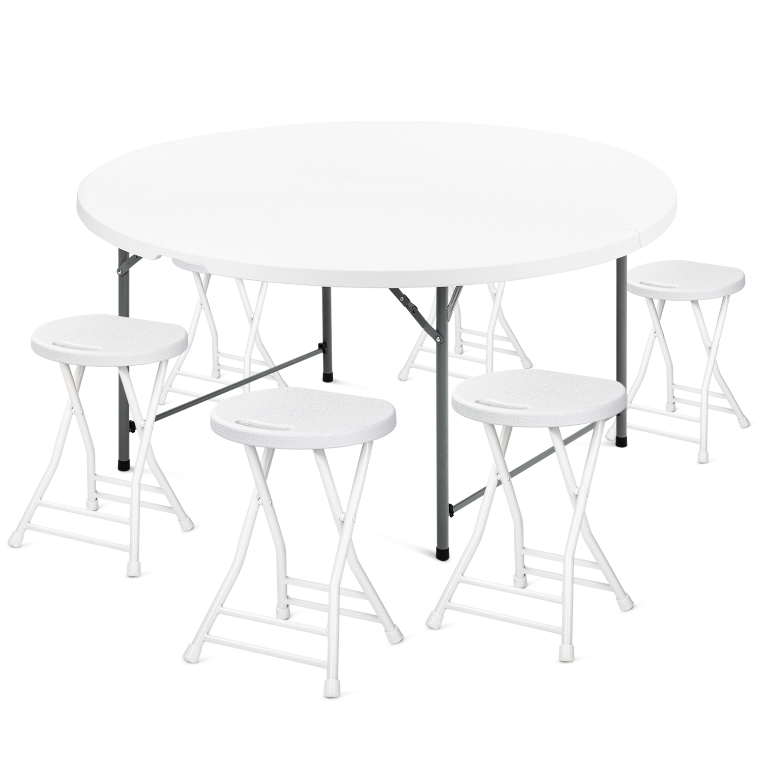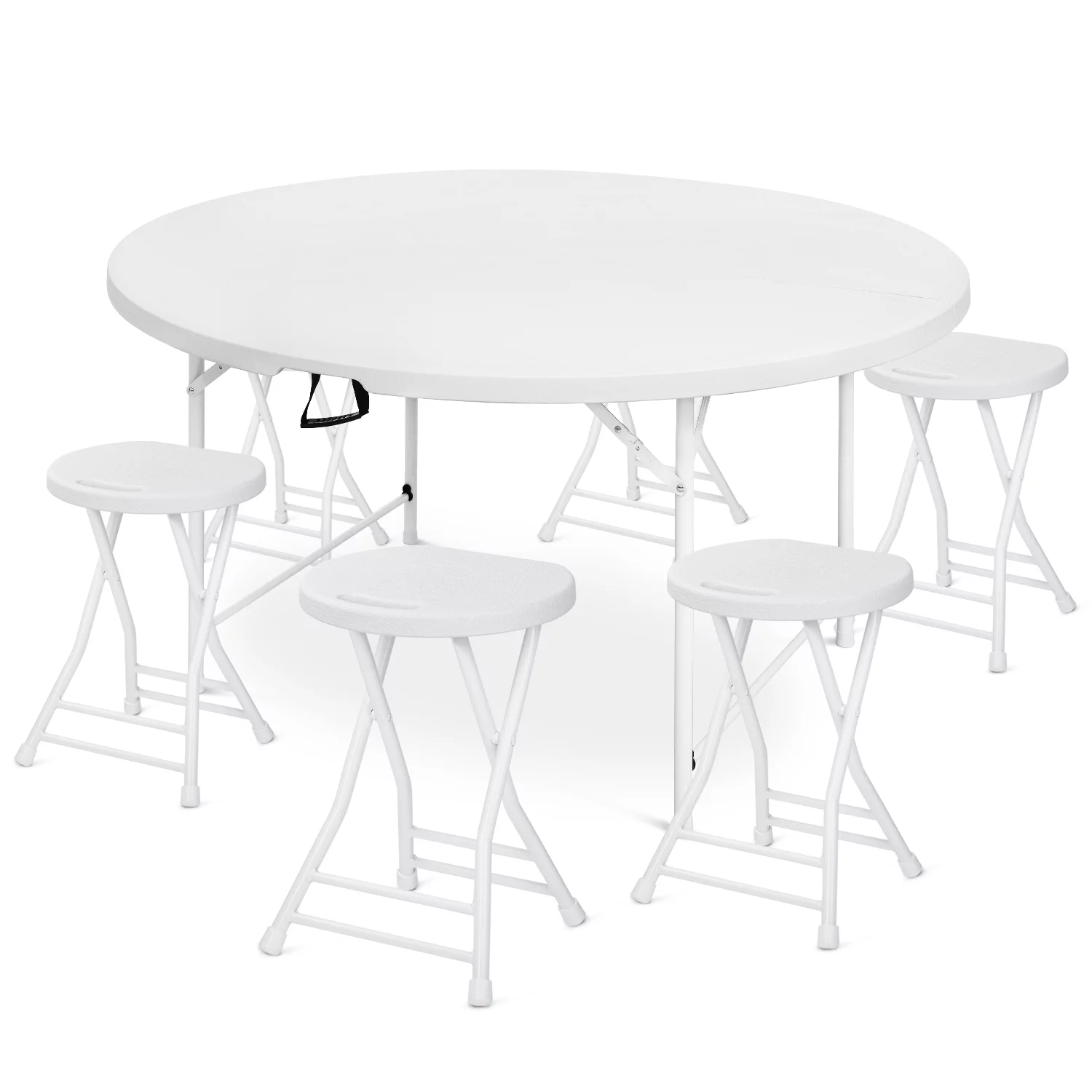 Magshion 7 Pieces 5 FT Folding Round Table and Chair Set, Banquet Event Wedding Card Table with Handle and Portable Steel Stools, White