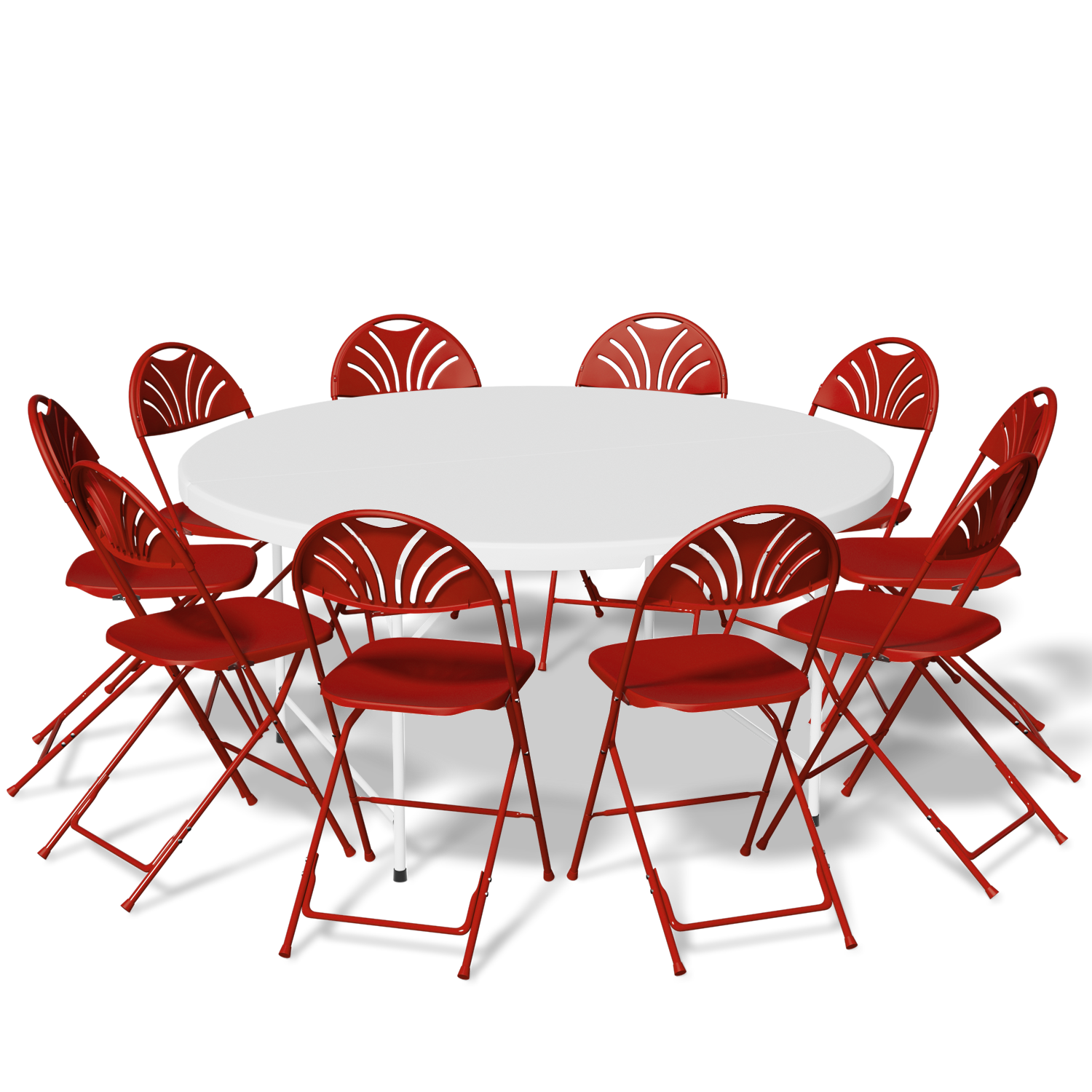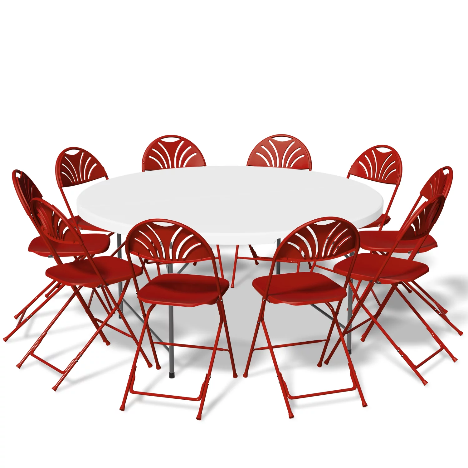 Magshion 11-Piece Round Folding Dining Table with 10 Red Chairs Set, 4.5 Ft White Foldable Table, Outdoor Picnic Desk with Carry Handle