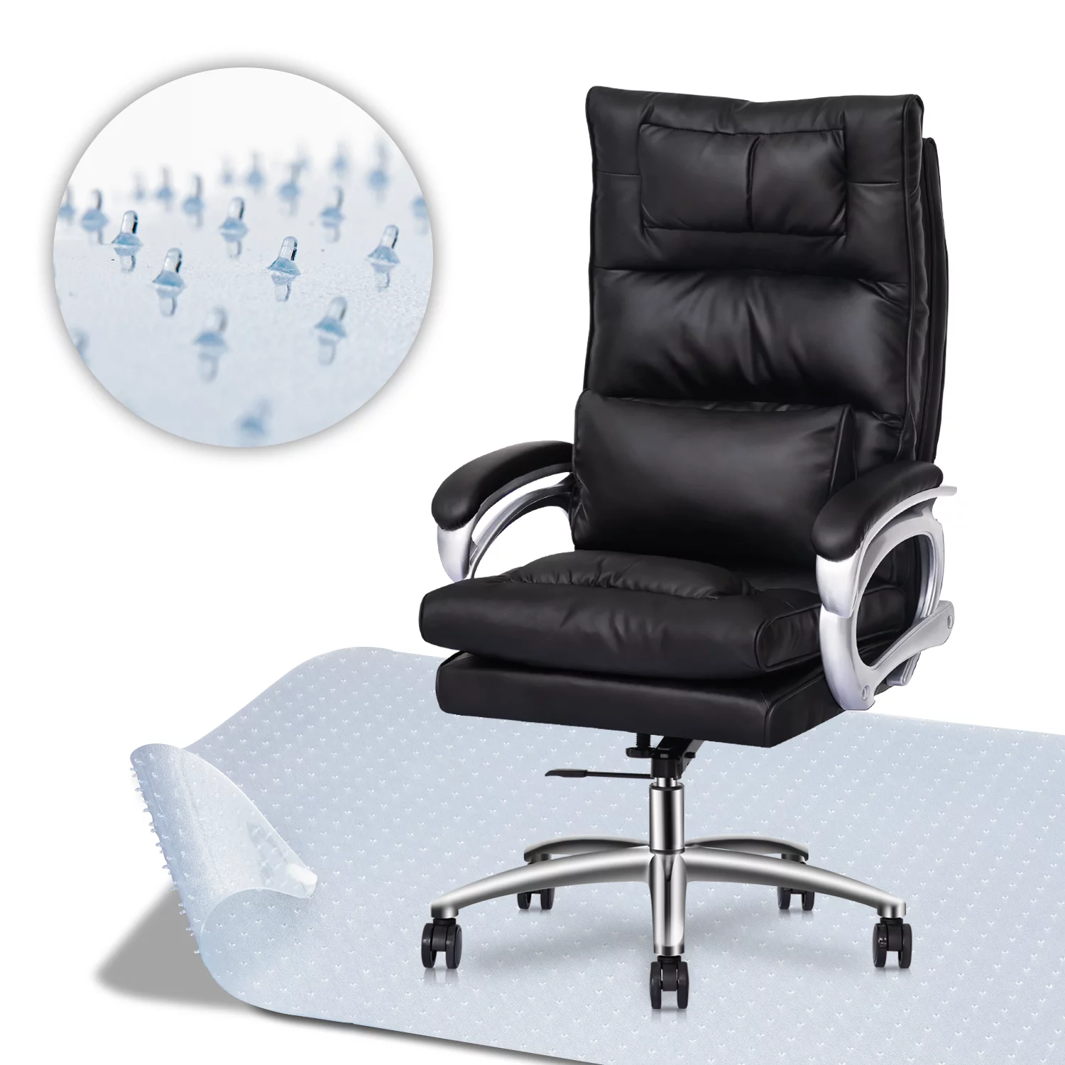 Magshion Executive Office Chair & Carpet Mat, Deep Tilt Swivel High-Back with Ergonomic Lumbar Support, Black