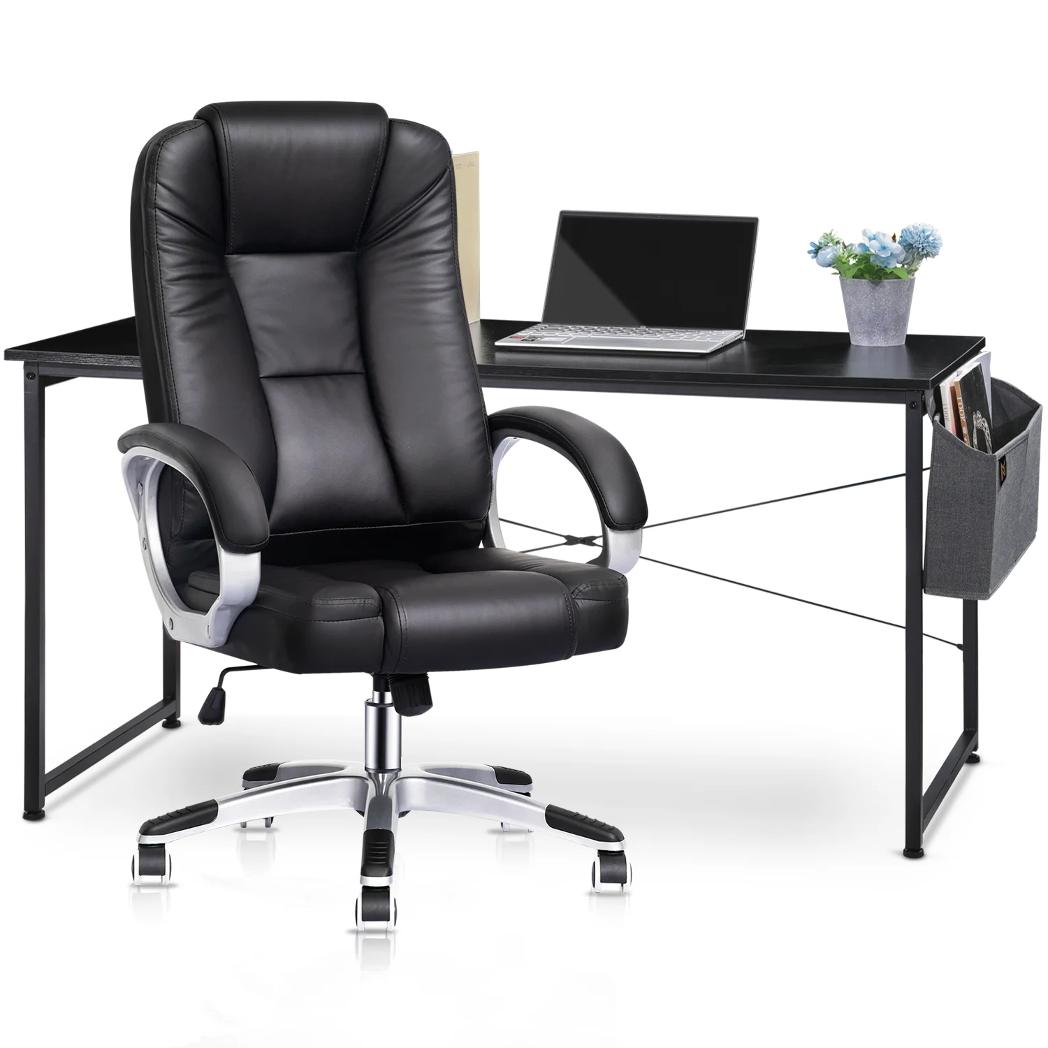 Magshion Home Office Desk & Chair Set with Floor Mat, High Back Computer Chair with Adjustable Height and 55" Laptop Table with Storage Bag, Black