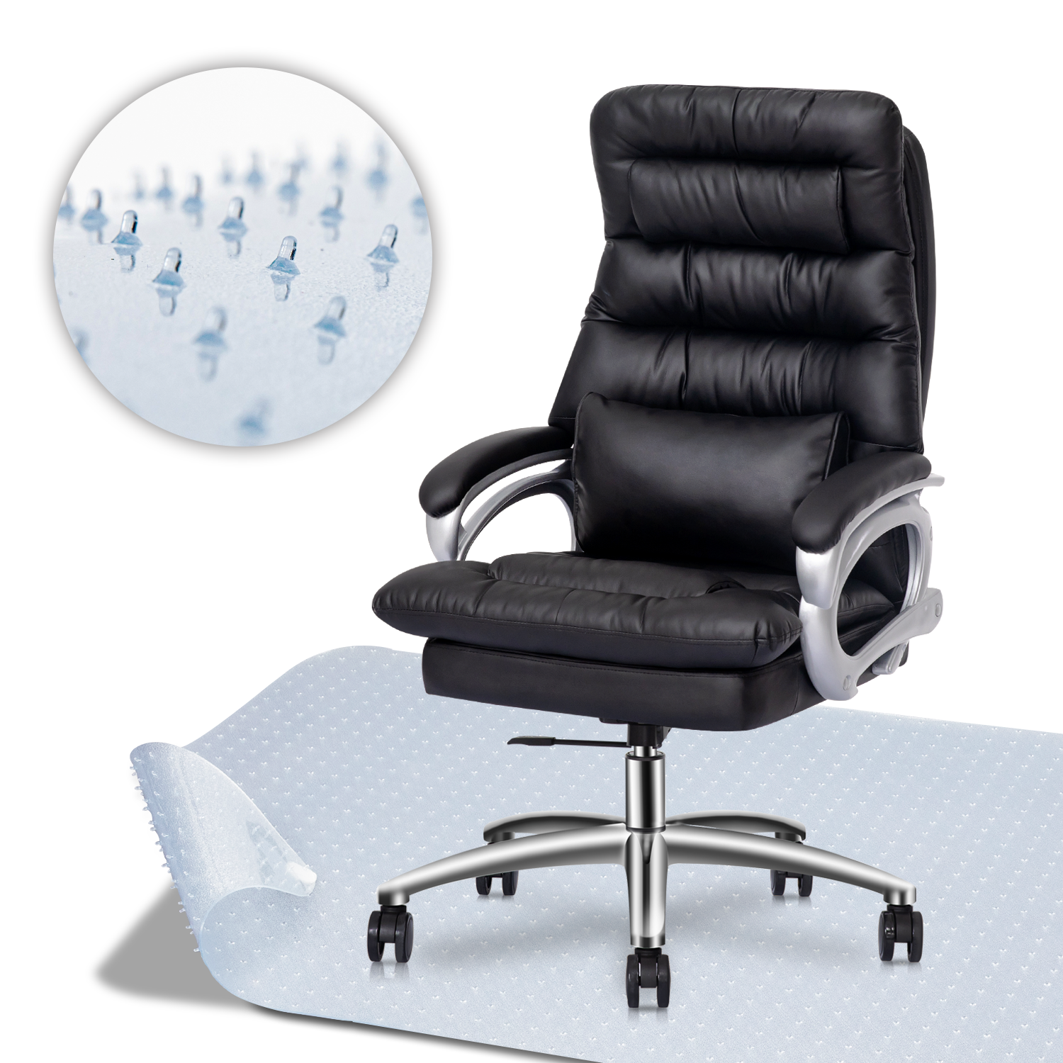 Magshion Office Computer Executive Chairs & Carpet Protect Mat, PU Leather Rolling High Back Seat, Black