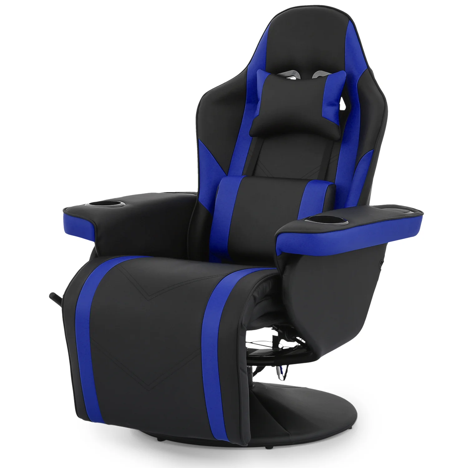 Magshion Massage Video Gaming Recliner Chair Ergonomic Swivel Recliner PU Leather High Back Computer Office Chair with Cupholder, Headrest, Lumbar Support, Adjustable Backrest and Footrest, Blue