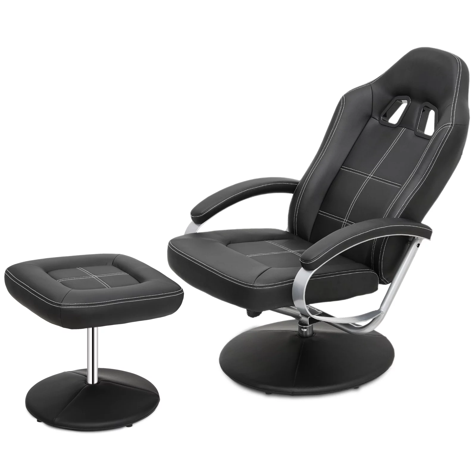 Magshion Recliner Chair with Ottoman, Adjustable Upholstered Video Gaming Chair, PU Leather Swivel Recliner with Footrest and Armrest, Black