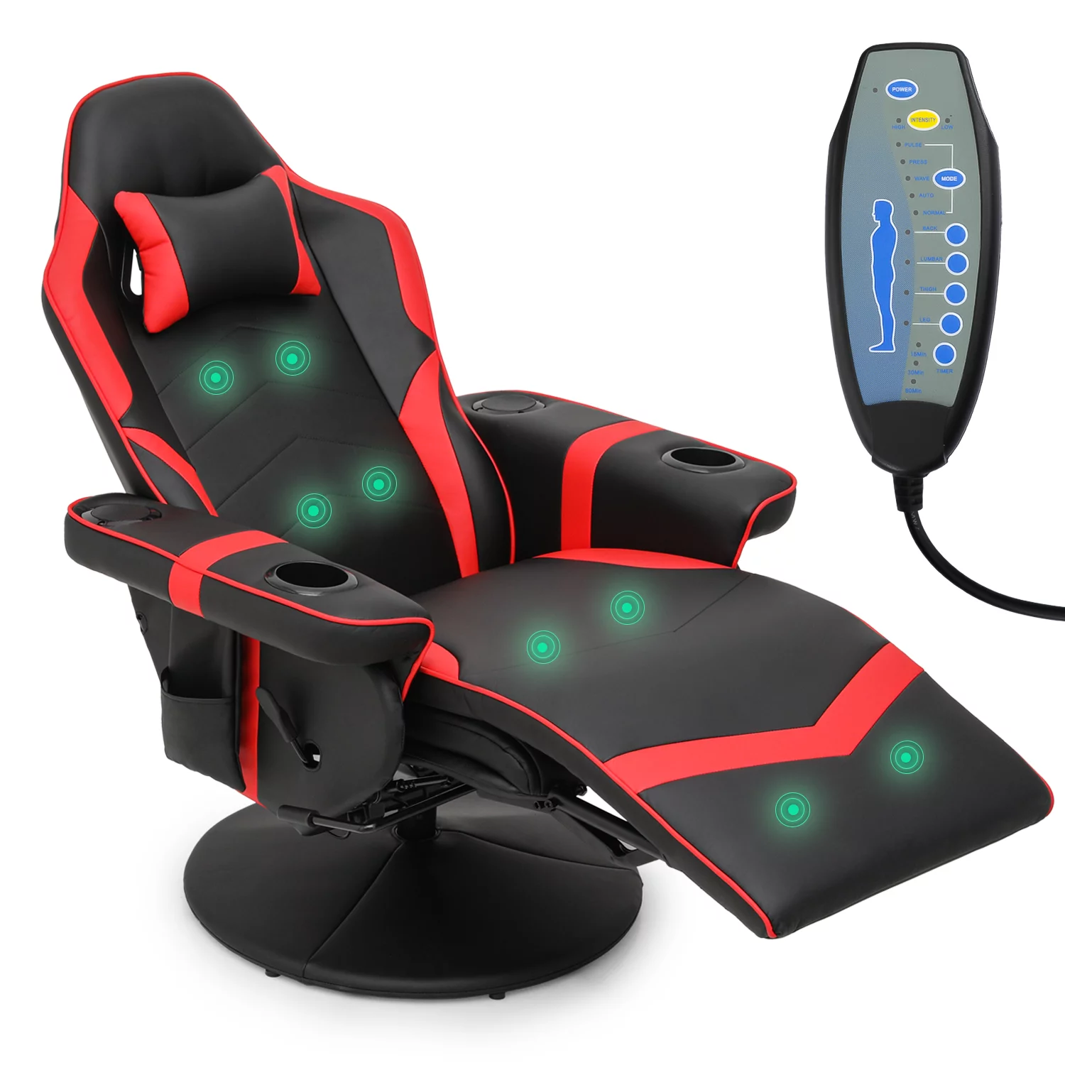 Magshion Video Gaming Chair with Massage Function, Racing Gaming Chair with Bluetooth Speakers, Computer Chair with Adjustable Backrest and Footrest, Red
