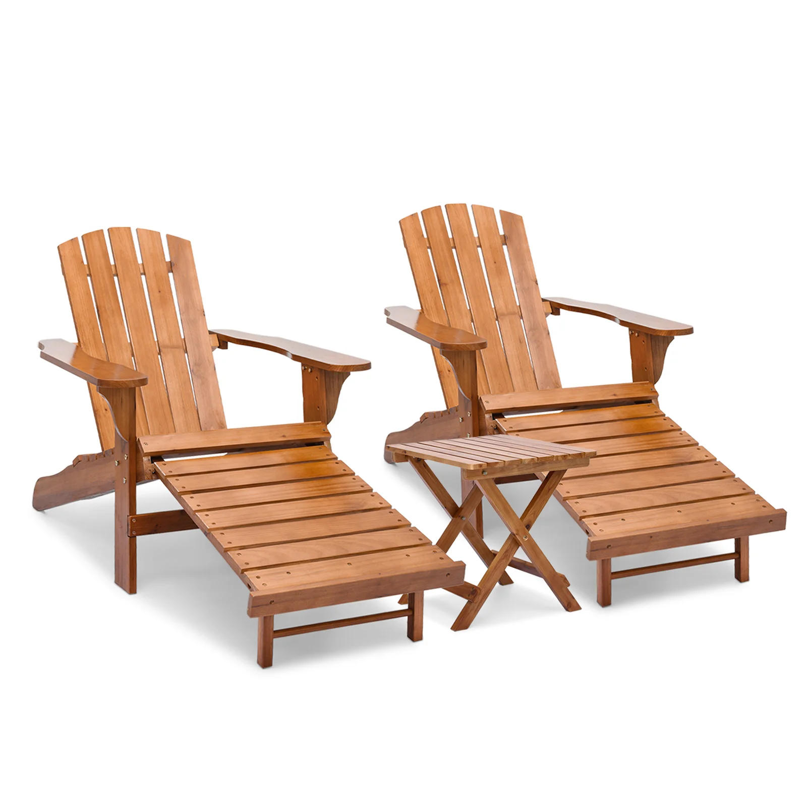 Magshion Set of 3 Adirondack Chair with Folding Side Table, Reclining Lounge Chairs with Retractable Footrest, Weather Resistant Outdoor Fire Pit Chairs, Teak