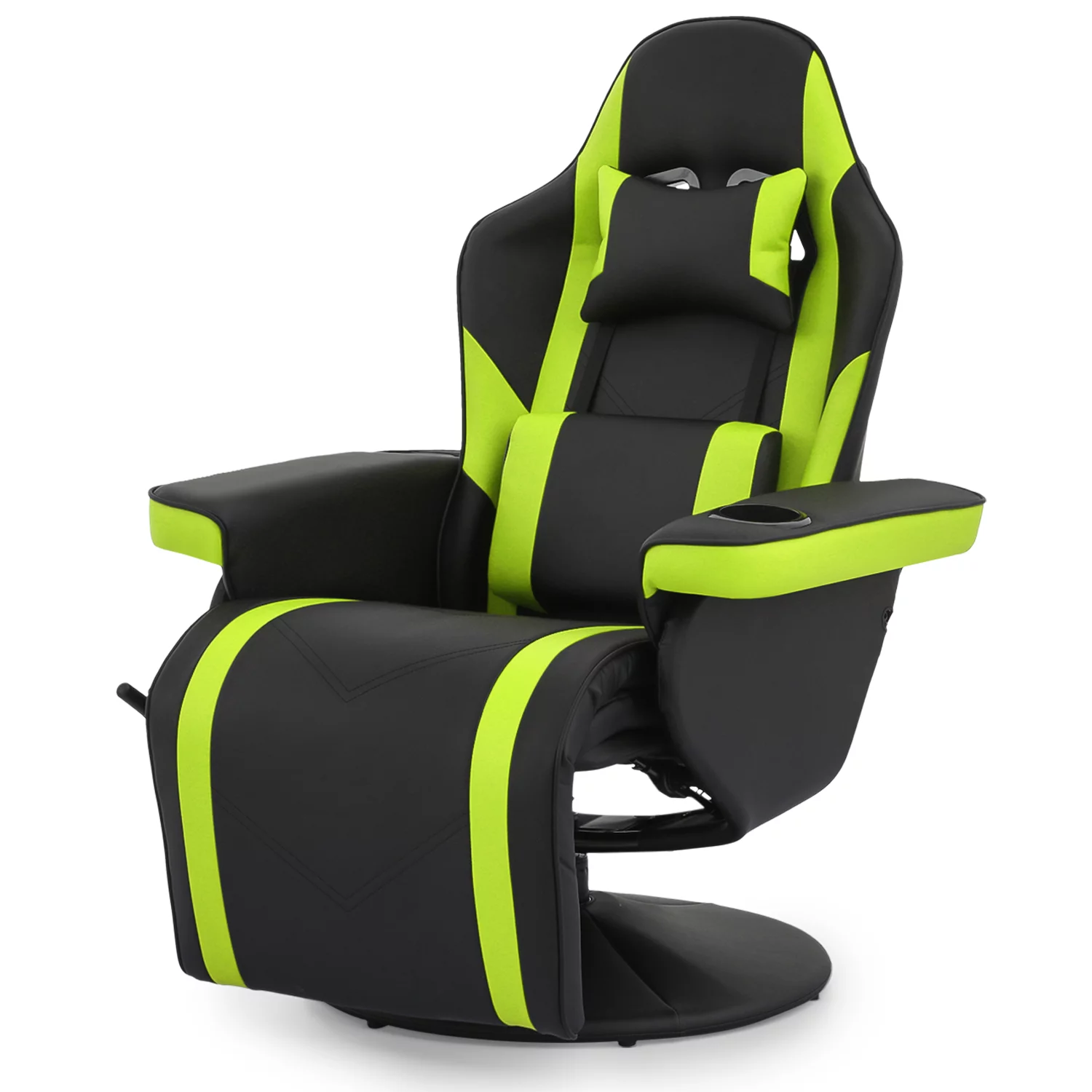 Magshion Video Gaming Chair Ergonomic Recliner Racing Chair, High Back Swivel Chair with Adjustable Footrest, Backrest and Lumbar Support, Headrest and Cup Holder, Green