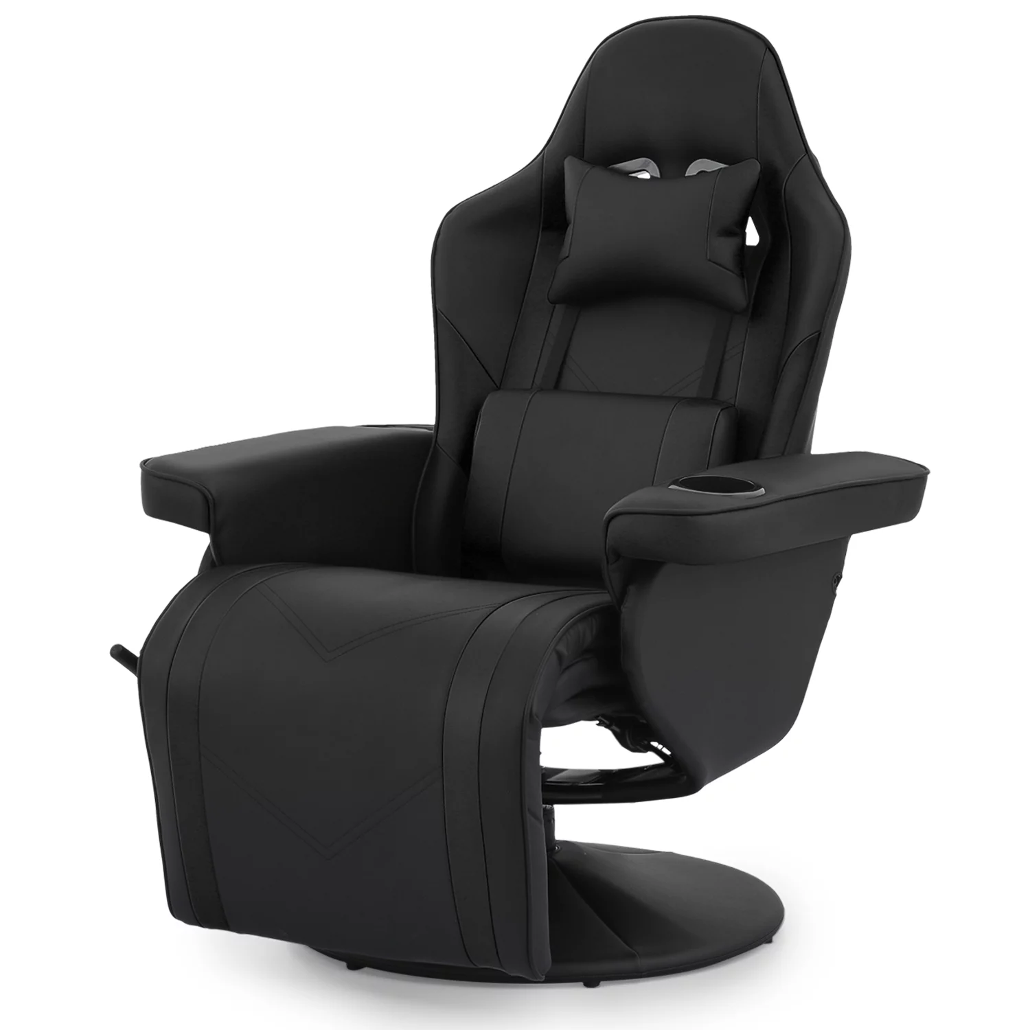 Magshion Recliner Gaming Chair Racing, High Back Swivel PU Leather Gaming Chair with Adjustable Backrest and Footrest, Black