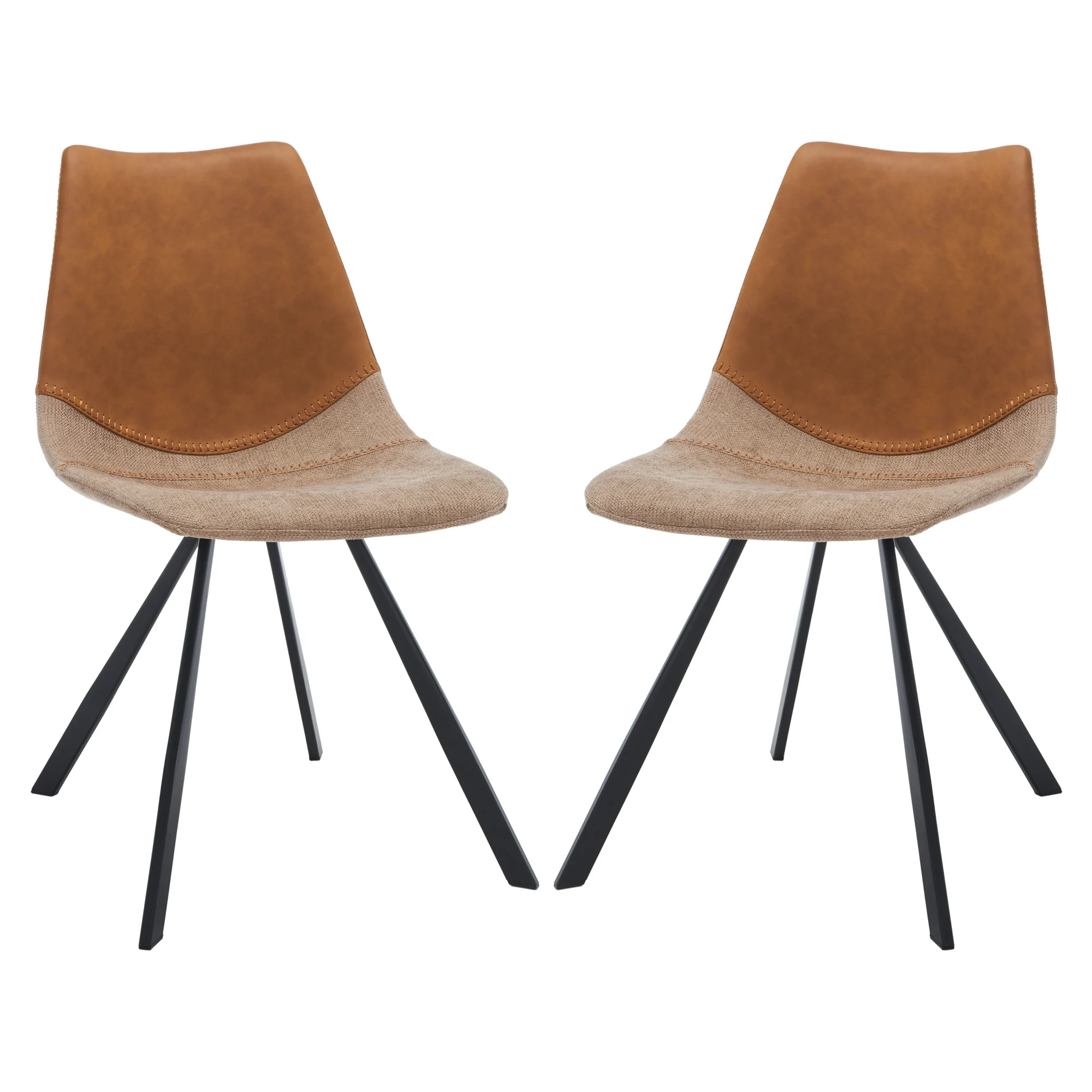 SAFAVIEH Greer Tufted Dining Chair, Cognac, Set of 2 (23.8 in. W x 19 in. D x 32.5 in. H)