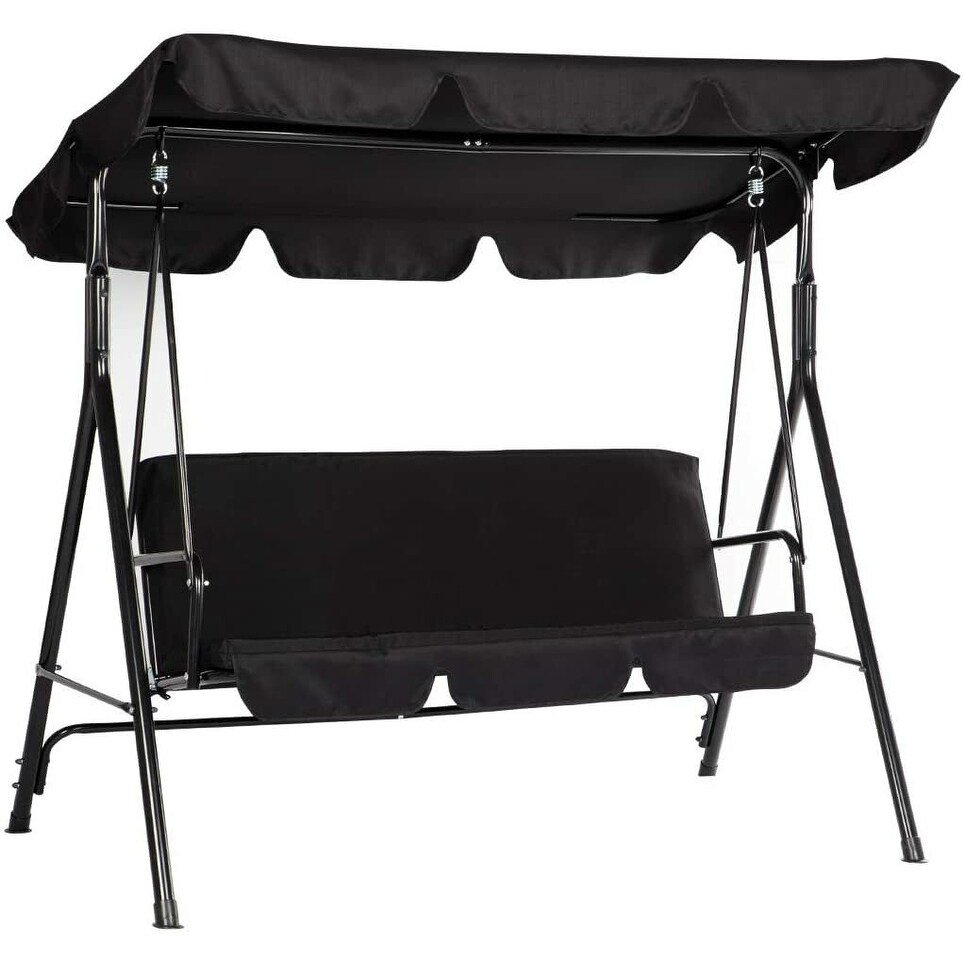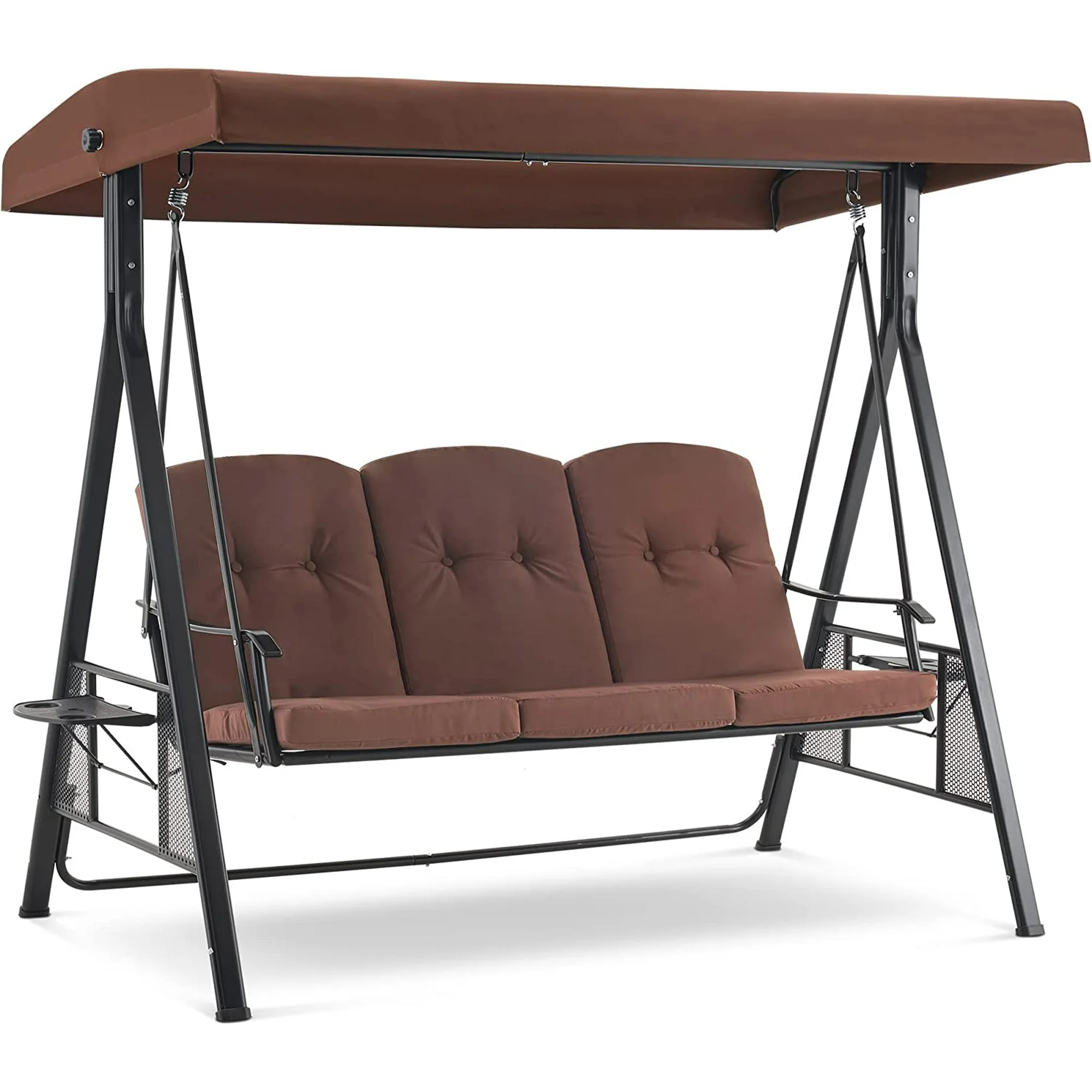 Mcombo 3 Seat Patio Swings with Canopy, Outdoor Porch Swing Chair with Stand, Adjustable Canopy Swing Sets for Backyard, Poolside, Balcony 4092(Brown)