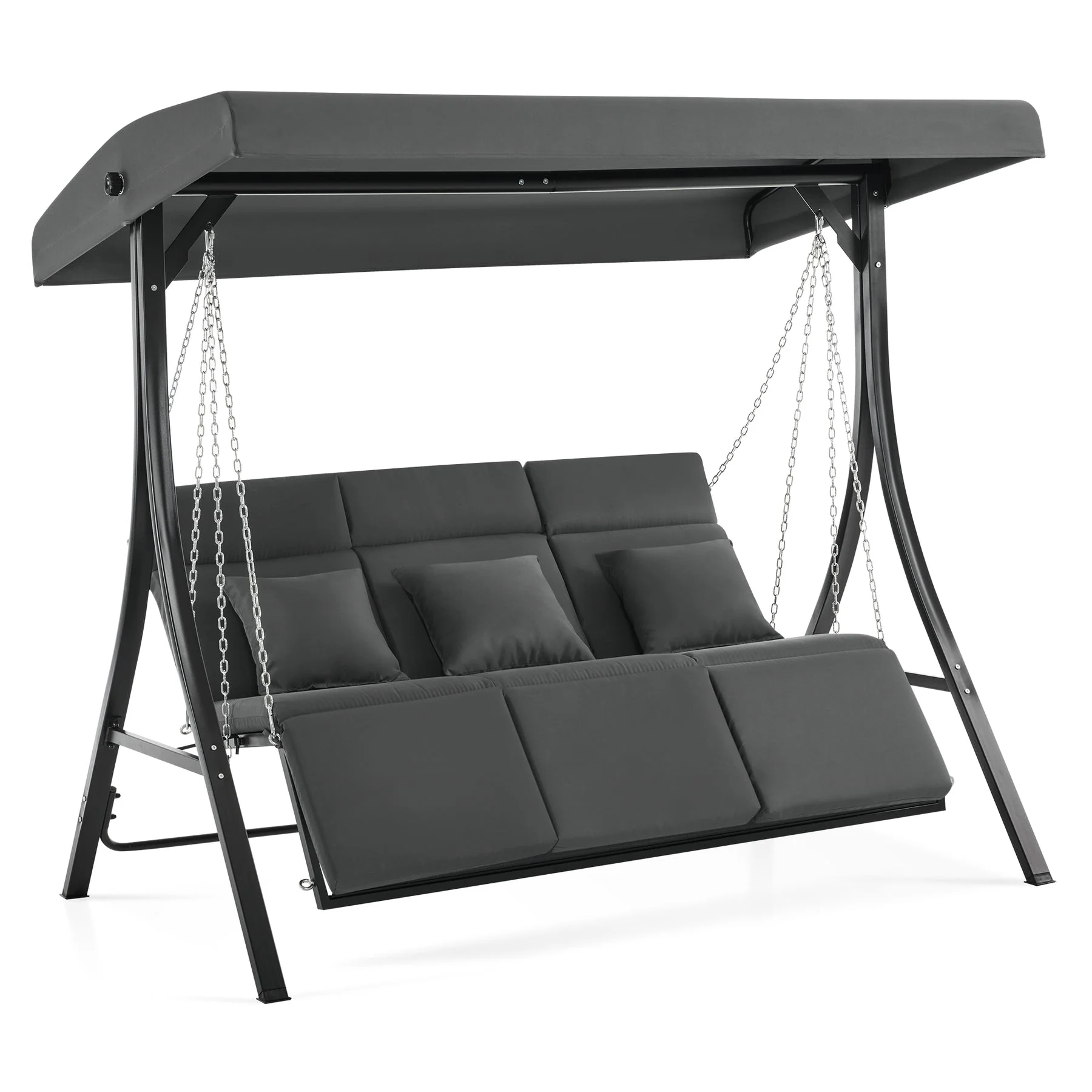 MCombo 3-Seat Reclining Patio Swing Chair with Chain Armrests, Outdoor Porch Swing Chair with Cushions and Pillows for Backyard, Poolside, Deck 4354