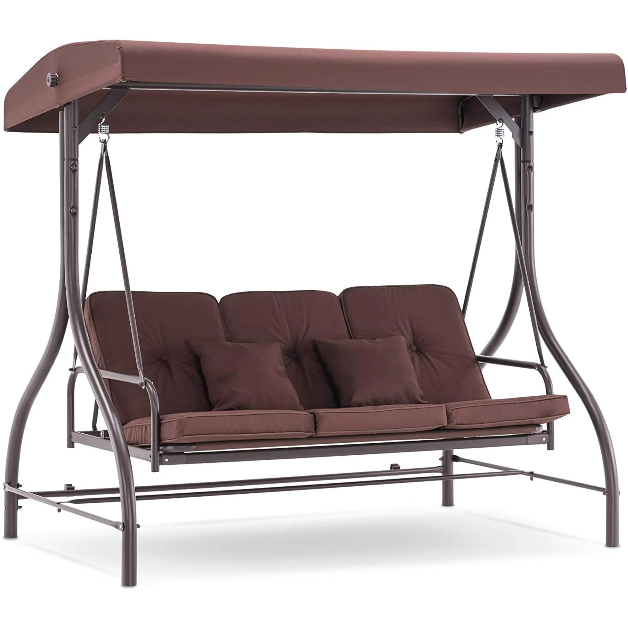 MCombo 3-Seat Outdoor Patio Swing Chair, Adjustable Backrest and Canopy, Porch Swing Glider Chair, w/Cushions, 4068 (Brown)