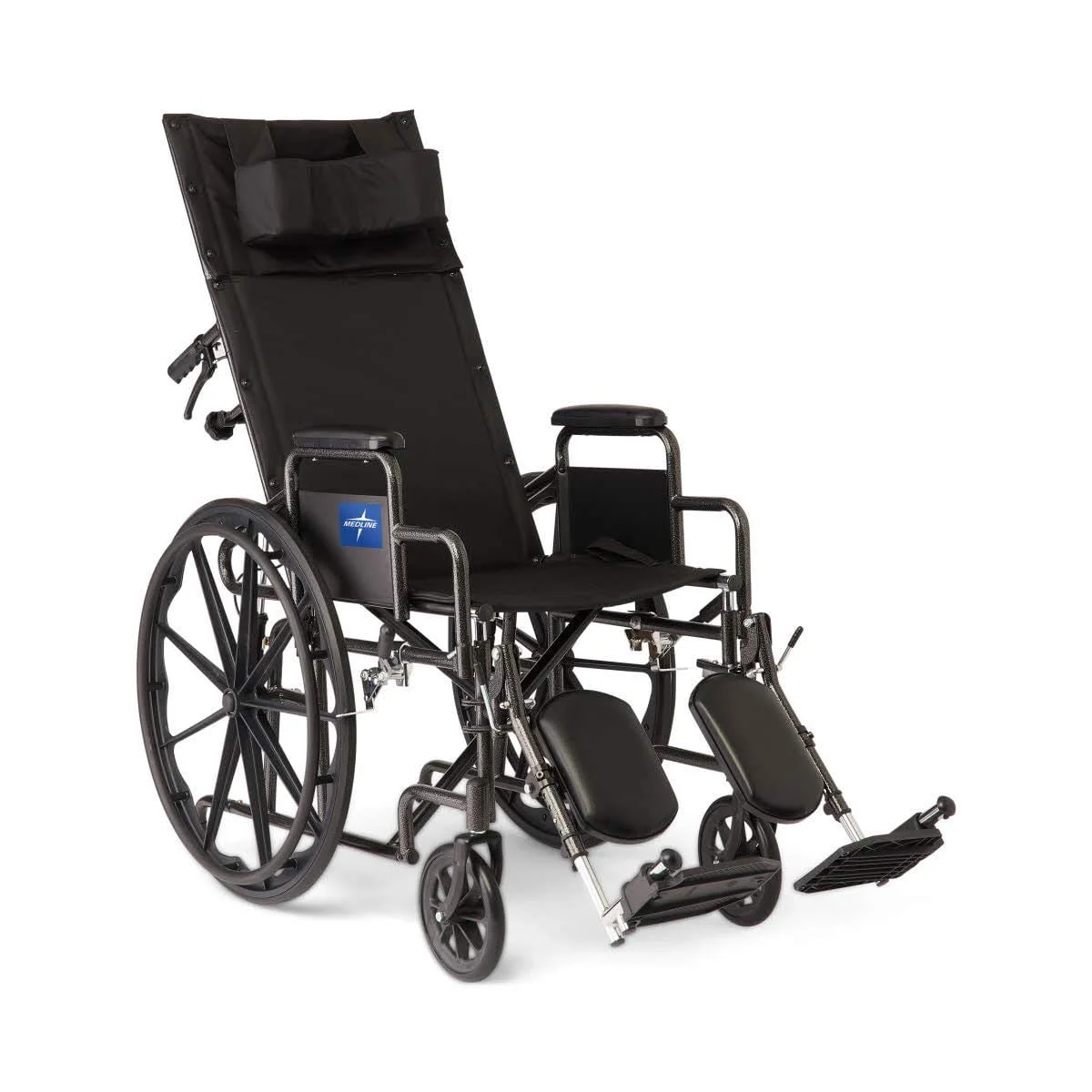 Medline Reclining Wheelchair, 16", with Elevating Leg Rests, Durable Vinyl, 300 lb. Weight Limit, Reclines 90 to 140 Degrees