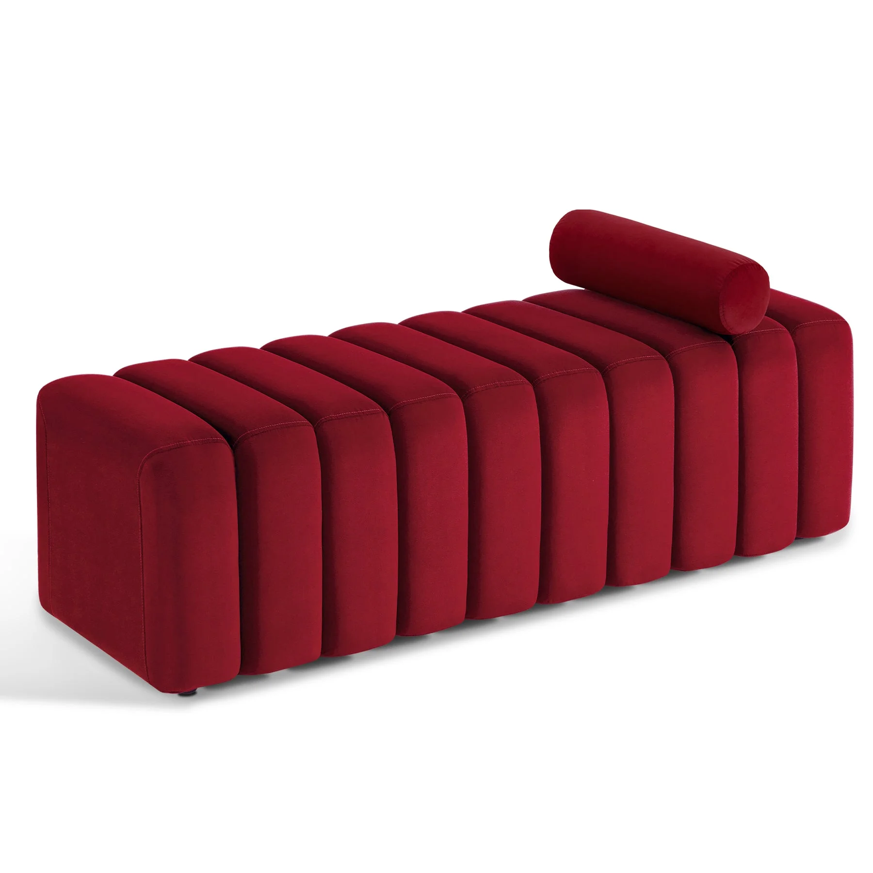 MCombo Waiting Room Benches, Guest Reception Lobby Chairs for Salon, Velvet Upholstered Ottoman for Bedroom Entryway 4698 (Red)