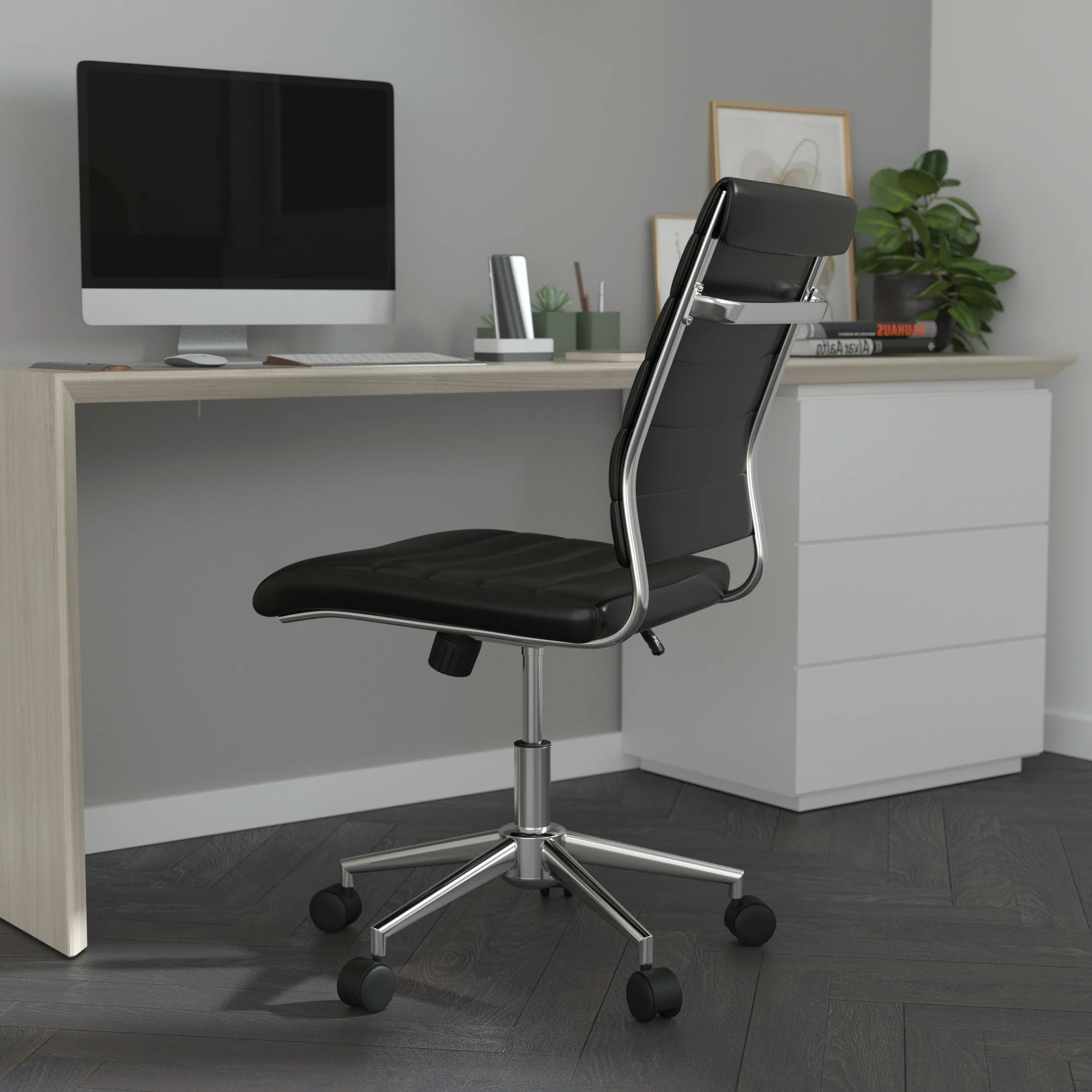 Merrick Lane Black Ergonomic Swivel Office Chair Ribbed Faux Leather Back and Seat Mid-Back Armless Computer Desk Chair with Chrome Base