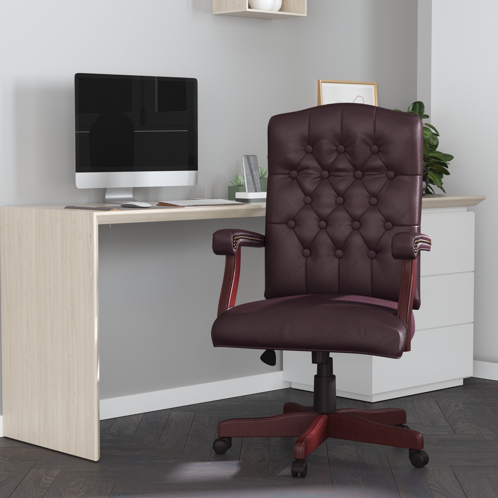 Merrick Lane Burgundy High Back Faux Leather Tufted Home Office Chair With Height Adjustment And 360° Swivel