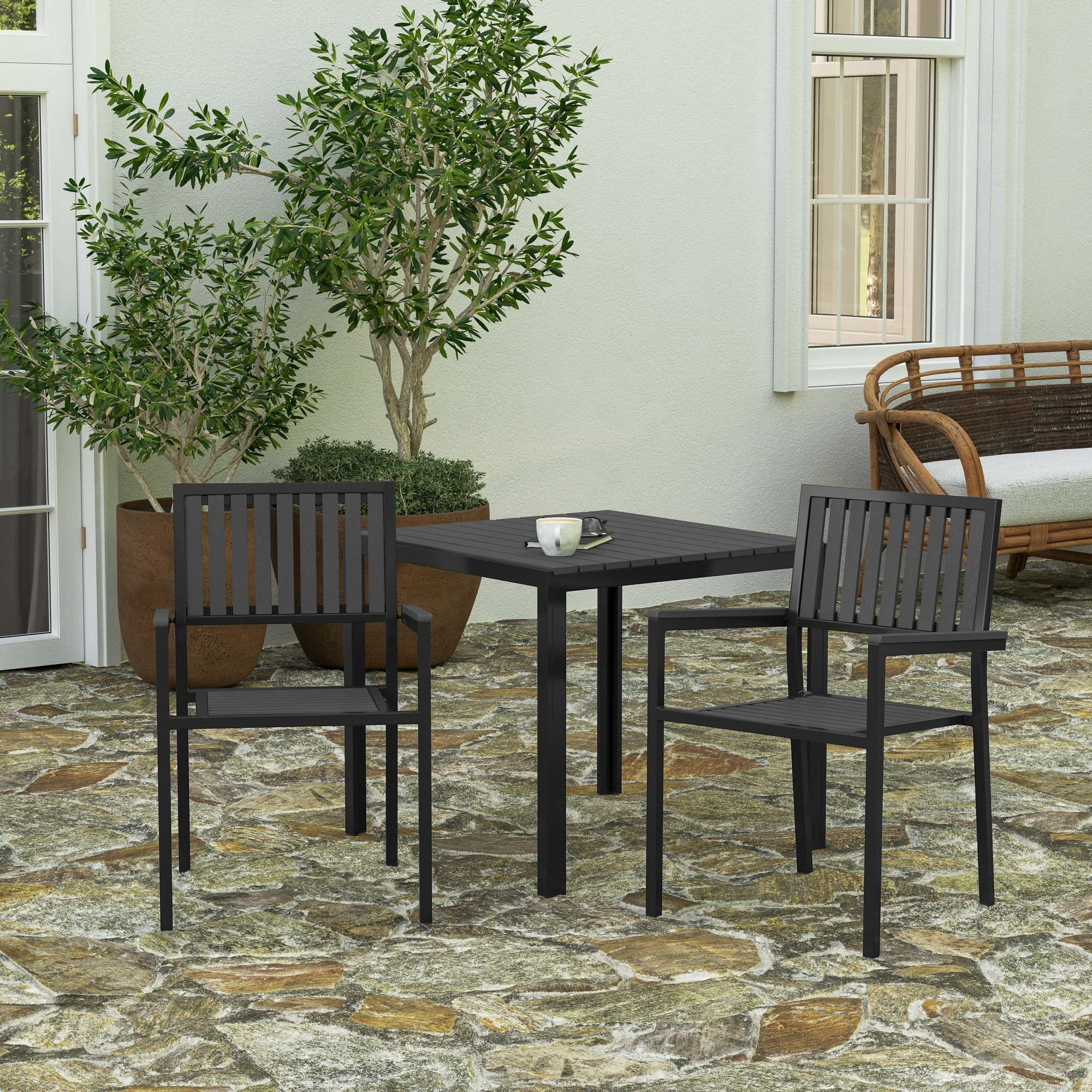 Merrick Lane Set of 2 Indoor/Outdoor Black Poly Resin Stacking Club Chairs with Slatted Backs and Seats