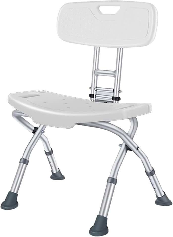 Folding Shower Seat, Height Adjustable Lightweight Shower Chair Elderly Disabled Backrest Non-Slip Rubber Feet Bath Stool Shower Stool