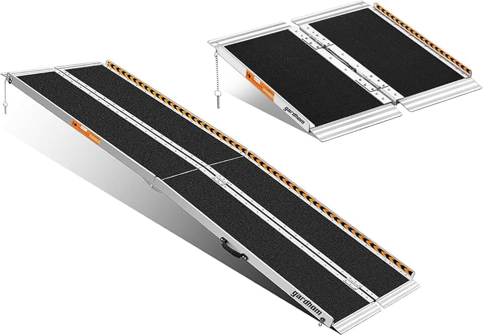 garhom Bundle 2FT 8FT Portable Wheelchair Ramp Anti-Slip Aluminum Folding Handicap Ramp Wheel Chair Ramp for Home Steps Wheelchair Ramps for Home Entrance Threshold Doorways Stairs Curbs Scooter