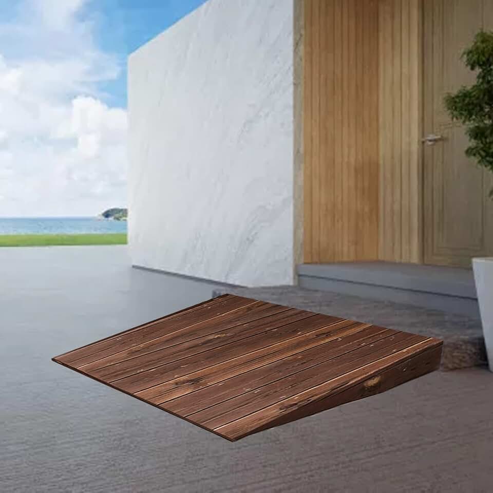 LSMKK Door Threshold Ramp Interior Exterior, Portable Non Slip Wood Step Ramp/Doorway Wheelchair Ramp 3/4/ 5/6/ 8 Inch Rise, for Scooter Bike Access Home (Size : 60x70x20cm (23.6x27.5x8))