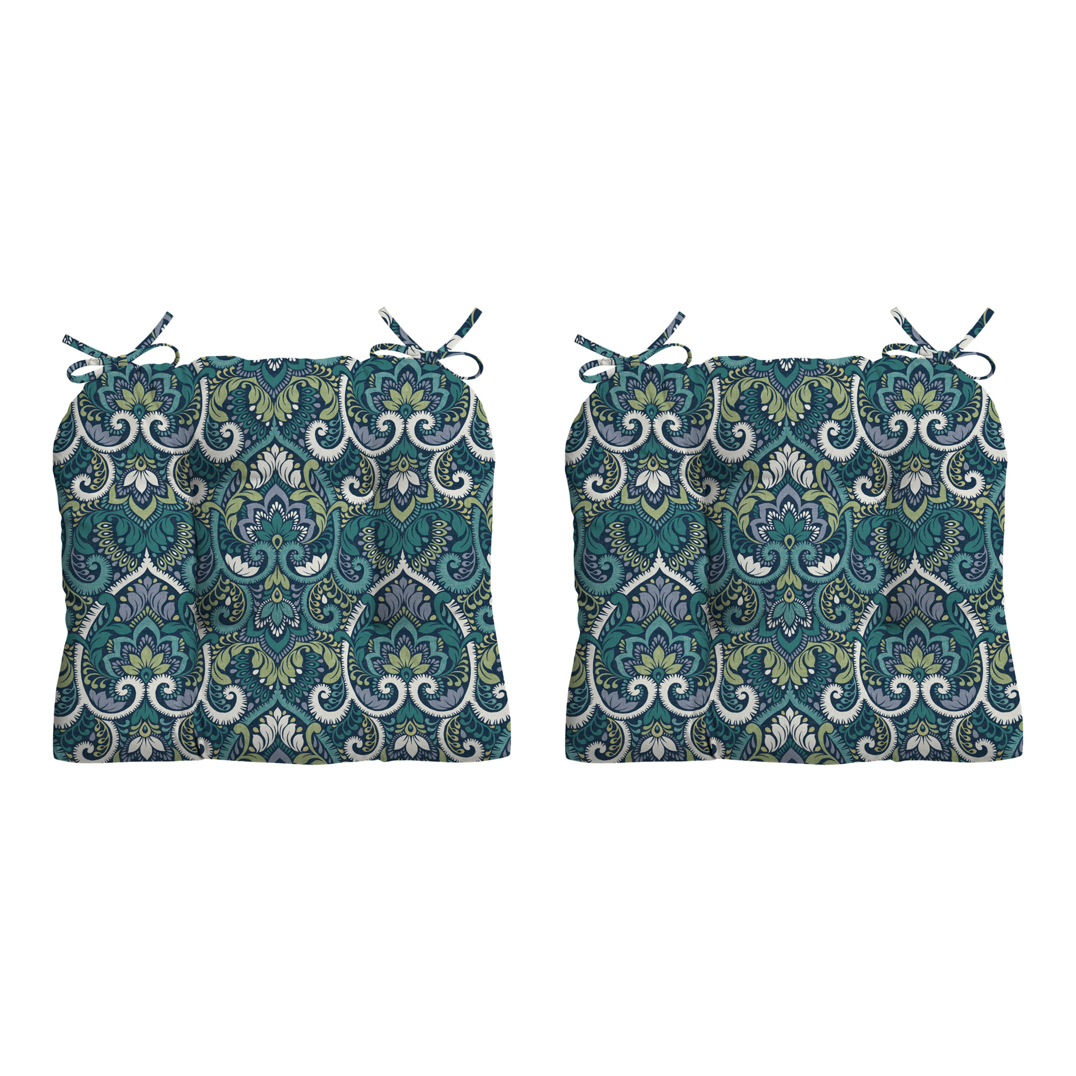 Arden Selections Outdoor Wicker Chair Cushion, 2 pack, 20 x 18, Tufted Plush Cushion for Wicker and Rocking Chairs 18 x 20, Sapphire Aurora Blue Damask