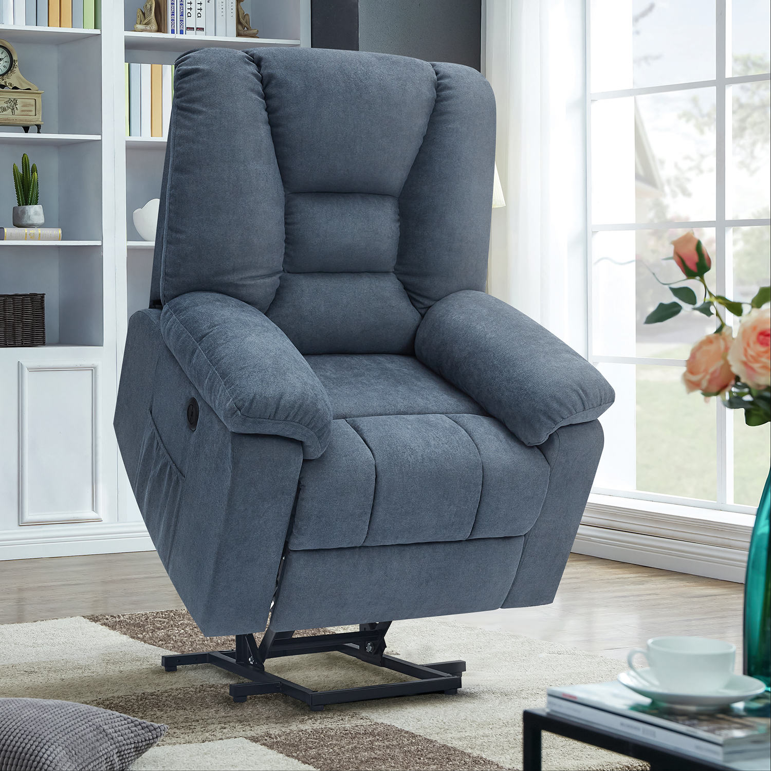 Danrelax Power Lift Chair for Elderly, Heated Vibration Massage & USB charging port, Fabric Blue