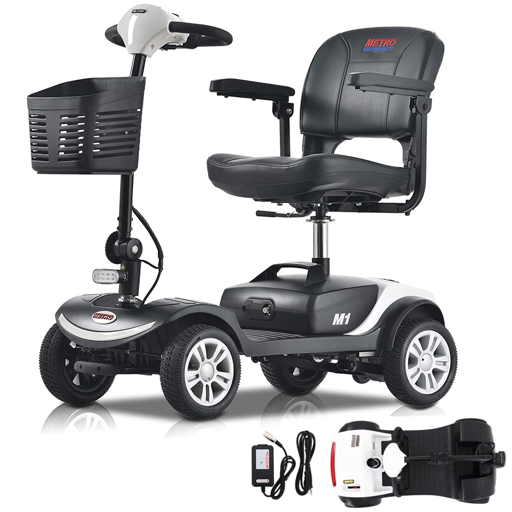 Electric Mobility Scooter for Adults and Seniors - 300 lbs Max Weight, 4-Wheel Powered Mobility Scooters Wheelchair Device for Travel, Elderly (with Head Light-White)